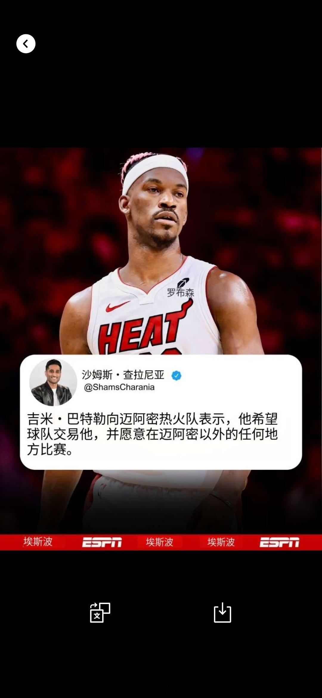 shams转发文霍斯特的文章:吉米巴特勒已经向迈阿密热火表示,他希望球队能交易他,并且愿意在迈阿密以外的任何地方打球。