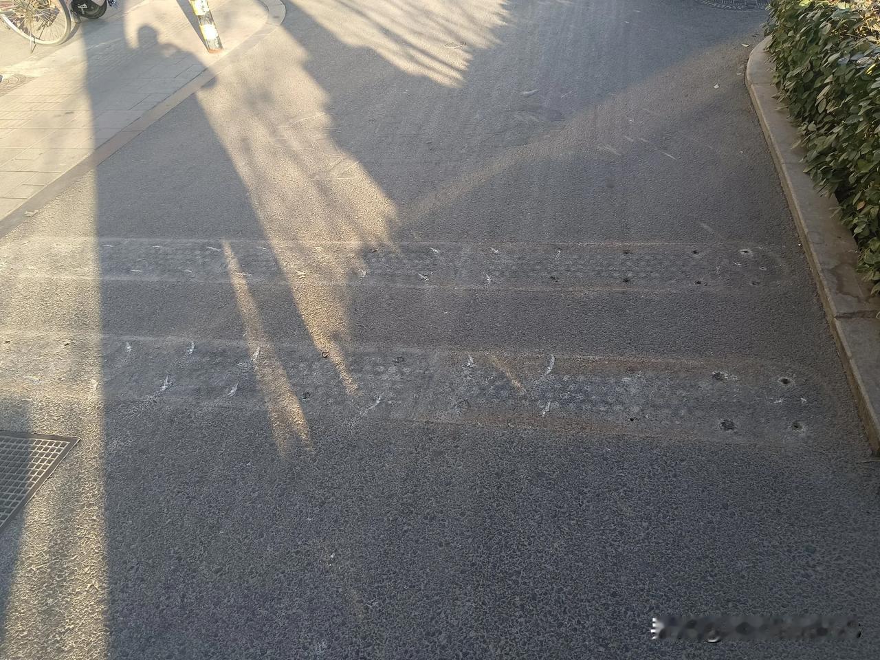 忻州街头怪现象之(二)(后续)。 听闻条友们说,长征街某单位门口非机动车道上安装的减速带已经拆除。近日散步路过,果然眼前一亮,横亘在非机动车道的四条减速带已不见了踪影,留下四条留有深深的疤痕的印记。 终于了。