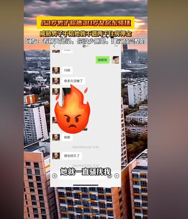 事件经过 租赁关系建立:2024 年 6 月,23 岁的小伙在山东东营西城胜安小区租了 30 多岁离异女房东李某的房子,支付 2000 元押金,押一付一。 骚扰行为开始:6 月中旬,女房东李某与小伙的交流语气开始变得不正常。6 月底,不仅言语明示,还向小伙发送不雅视频,持续半年多的时间里,女房东李某的骚扰行为未停止。 骚扰手段升级:女房东李某以 “减肥” 等承诺讨好小伙,试图诱使他屈服,并承诺只要男方答应,之后就不会再骚扰他。之后更是明确表示,如果小伙子不答应她的要求,她就不会退还 2000 元押金。