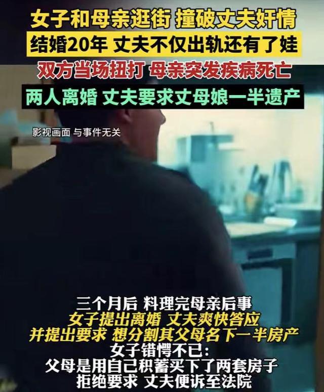 案情经过:方静与曾梁结婚 20 年,3 年前方静父亲去世后母亲身体一直不好。今年年初,方静带母亲逛街时撞见丈夫挽着别的女人,厮打过程中母亲突发心脏病去世。三个月后,方静向曾梁提出离婚,曾梁答应离婚但要求分割方静父母名下的两套房子。