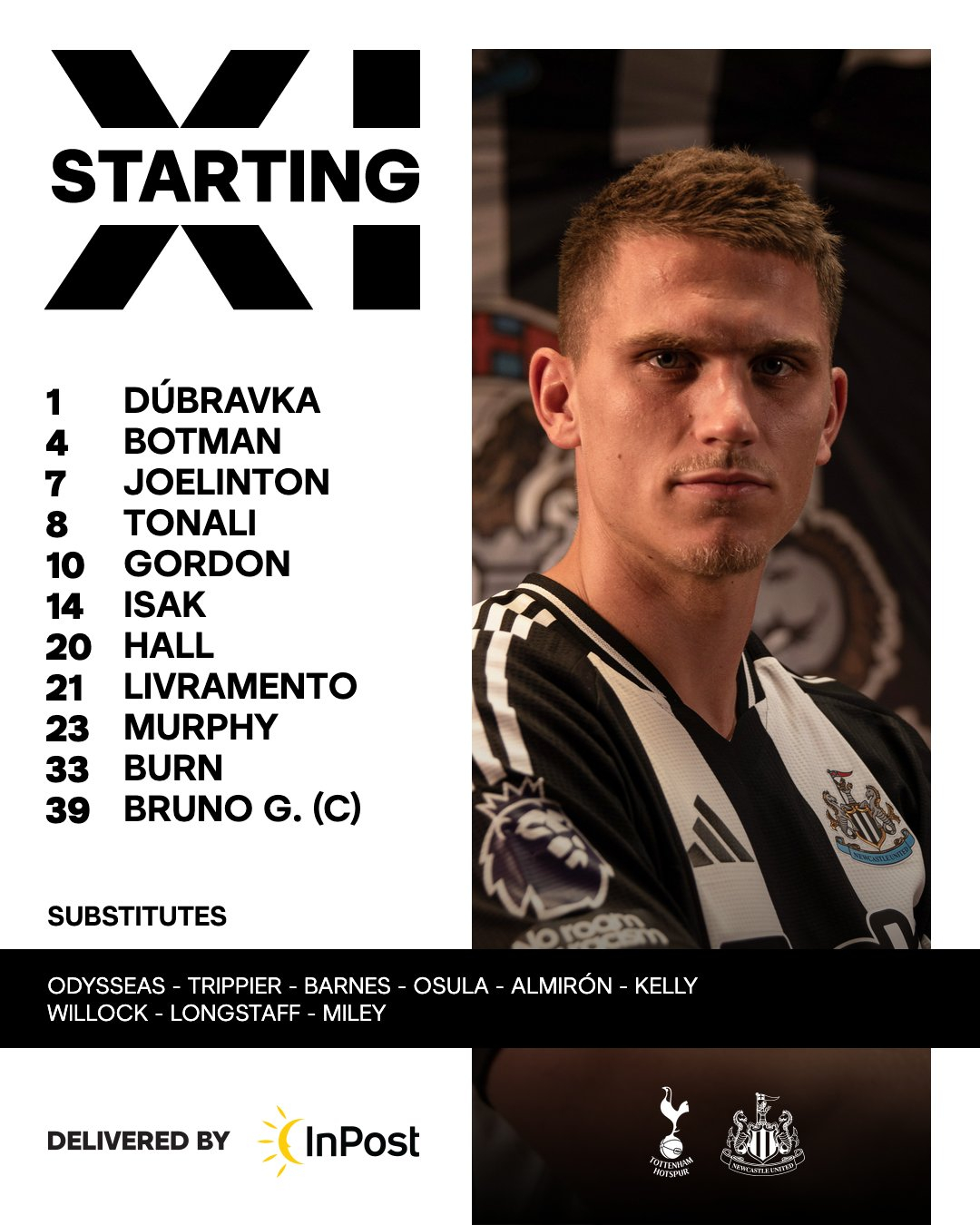 纽卡斯尔联首发:安东尼-戈登, 雅各布-墨菲, 伊萨克, 托纳利, 乔林顿, 吉马良斯, 丹-伯恩, 利夫拉门托, 博特曼, 刘易斯-霍尔, 杜布拉夫卡