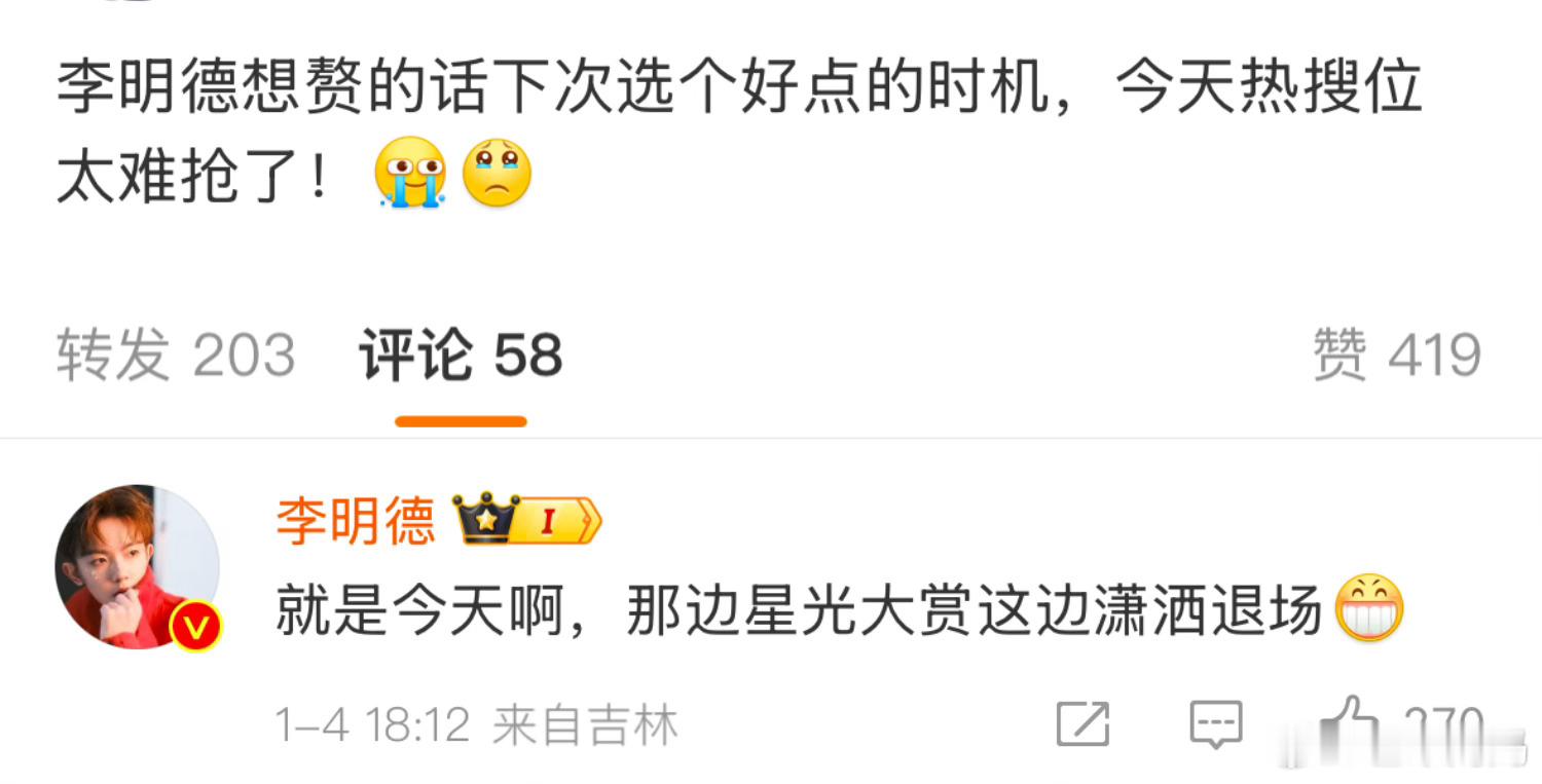 李明德评论 星光大赏导播大战李明德 李明德现在要是开个直播,观看肯定远超星光大赏吧[喵喵]