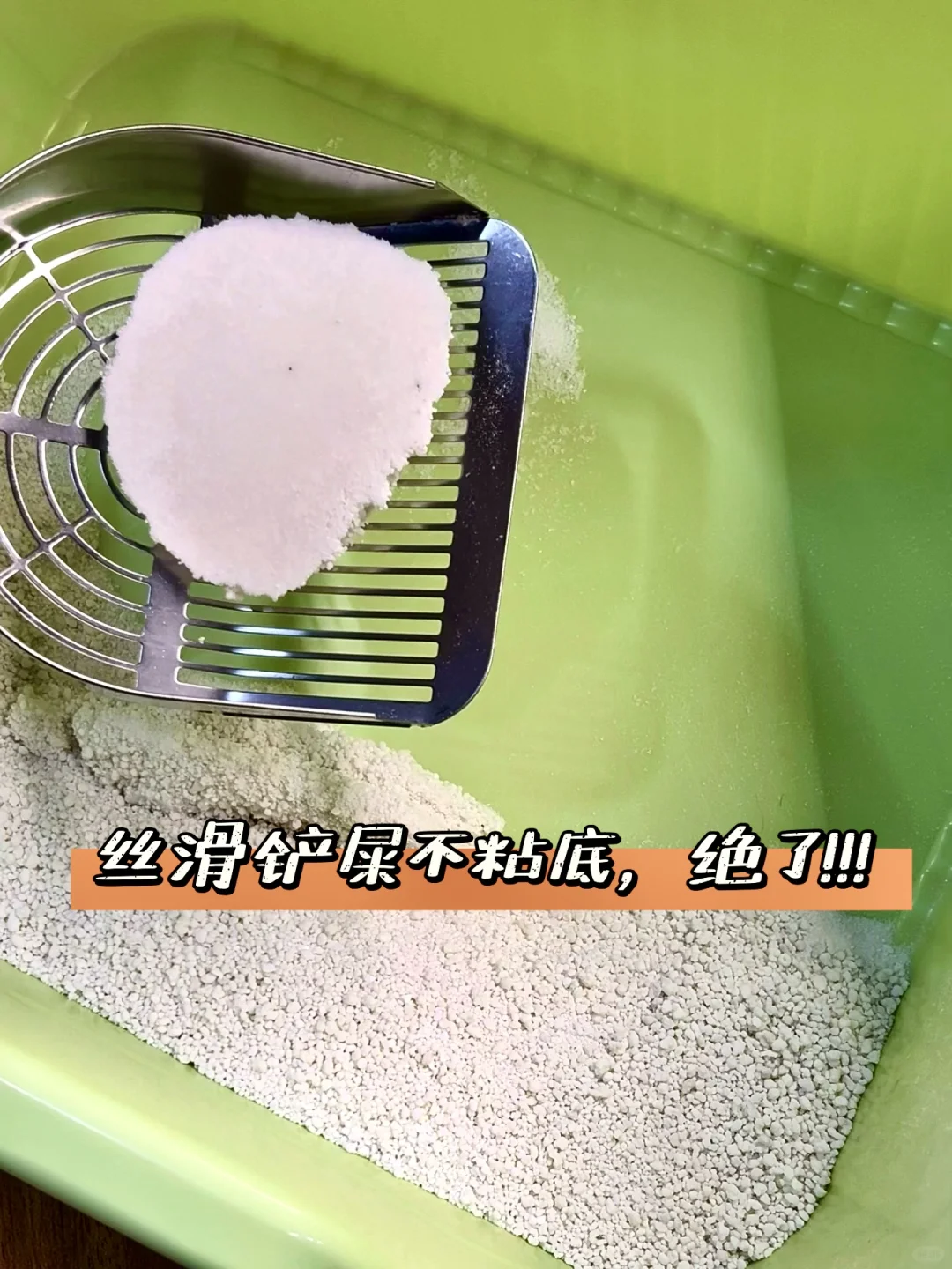 而且你别看它薄啊,还不黏底!不像膨润土你但凡砂铺得太薄不光盆脏铲子也脏,喵彩这个就真的铲起来干干净净!只有职业铲屎官才知道喵彩这种不黏底、不会碎还省砂的猫砂有多难得!!