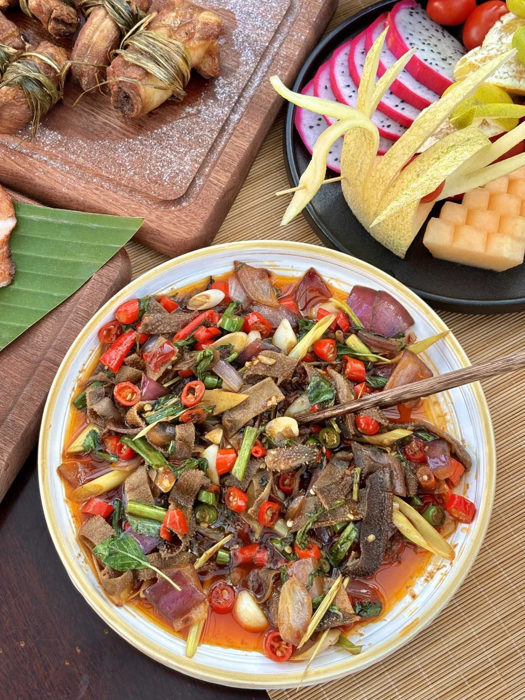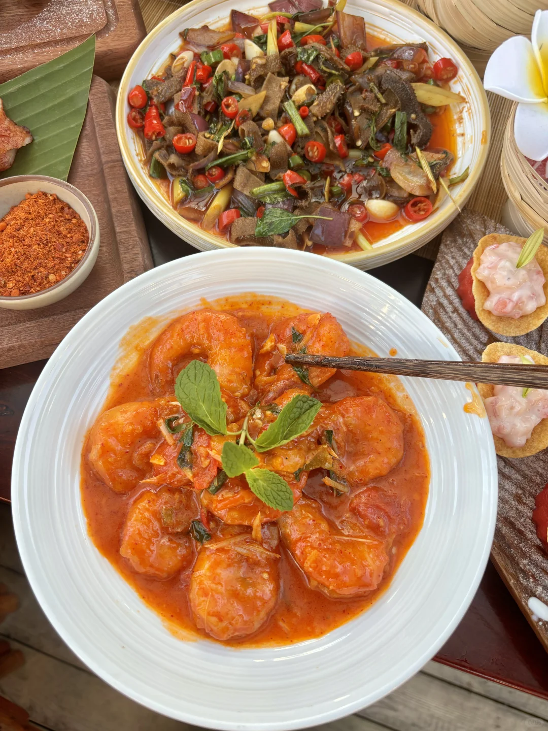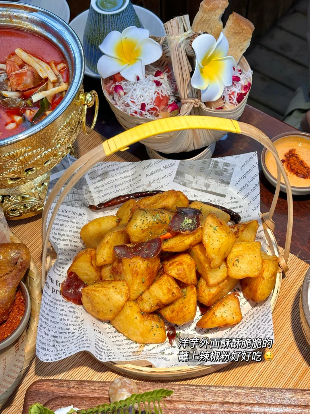 感谢大理本地姐妹带路!!她说是来大理一定要吃的一家店,确实没让我失望… 店里大部分都是回头客,用餐环境也好好,油炝黄喉、油炝毛肚真的香晕了,好浓烈的饭张力,拌饭吃我一人可以干两碗😭😭 冬阴功汤把酸味、辣味、甜味都拿捏的好到位,汤头非常浓郁,还有马帮大洋芋、稻香排骨、傣味泡鲁达都很不错… 如果来大理古镇只有时间吃一家的话,真心建议去试试这里(叫📍金傣苑)