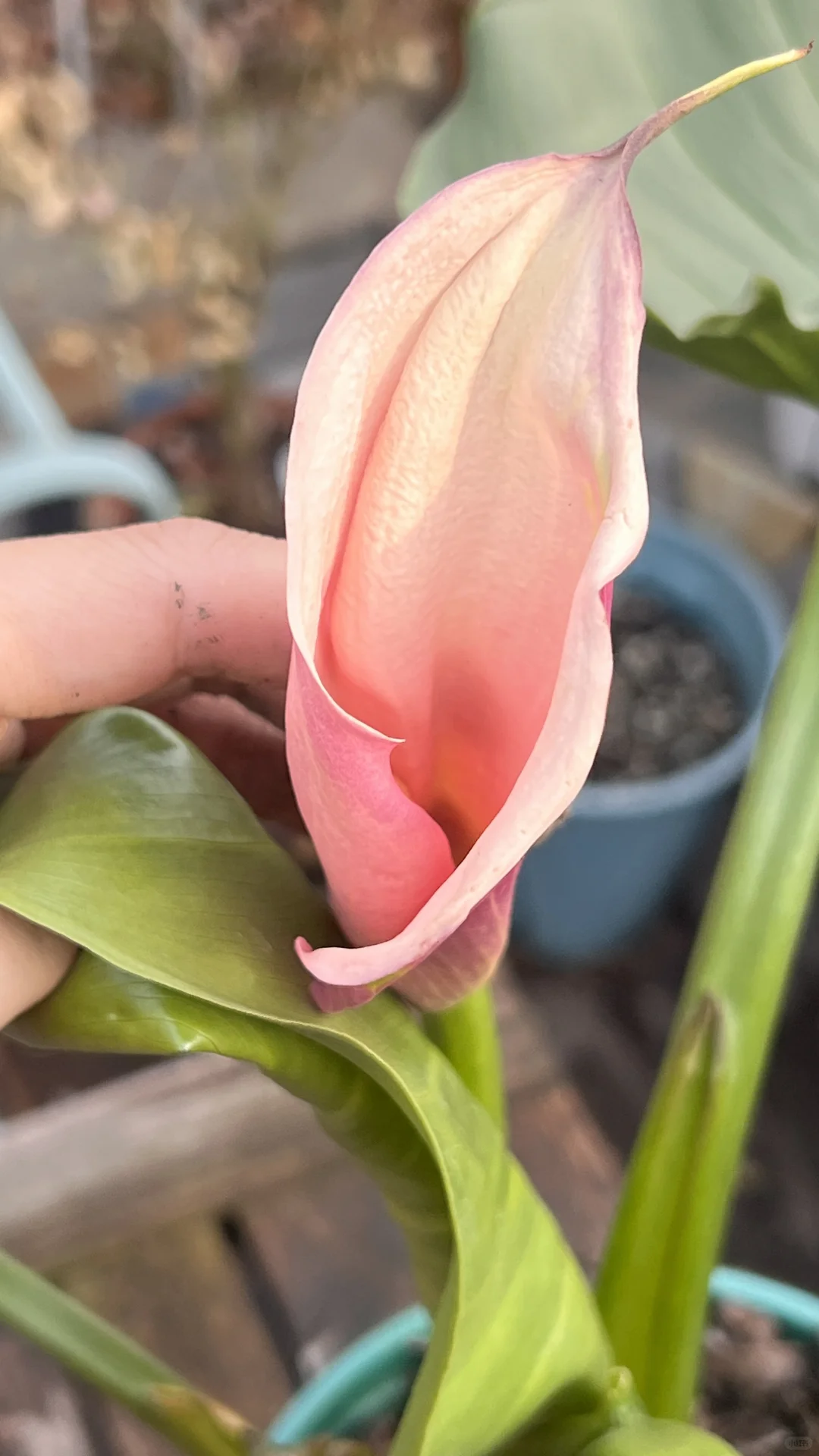 给非洲菊拍照的时候被后面这个粉色马蹄莲粉到了。 见到实物之前,我心里想“这个宣传图肯定加了滤镜,怎么可能那么粉” 见到实物之后“我的天,怎么可以这么粉!” 现在粉色马蹄莲火烈鸟苗情非常好! 我运气很好带了花,这个颜色太美腻了! 基地准备换盆了!快冲!