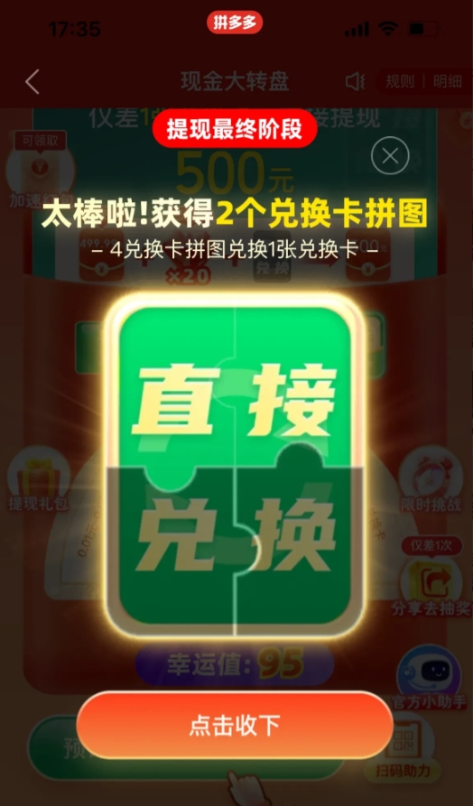 到哪里可以投诉拼多多这个抽奖活动?真是气死人了! 家里老人在群里发了一个二维码说是拼多多要助力抽奖,就差两个人了,让我还有家里其他的人扫码助力,点开以后499块,离提现只有一块钱,然后抽奖,抽9次,每次一毛,抽到499.9块,差0.1元,然后换成抽钻石,一次10个,换成钱是0.01,然后抽9次,0.09,再差0.01元提现500元,接着就让你邀请好友助力,至少5人,助力完以后,抽幸运卡,反正就是一环套一环,永远就差一点点,就这一点点,让人能恶心死。 难道就没有人投诉拼多多这个活动吗?有人真成过吗?