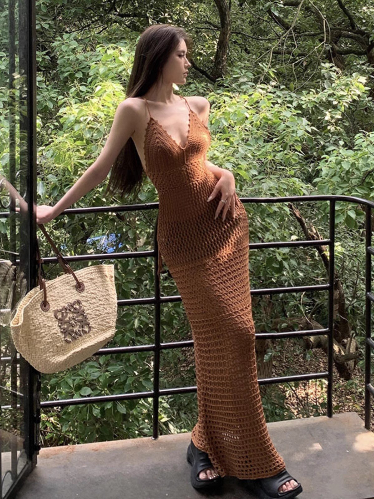 法式绝美抹胸挂脖吊带连衣裙女超仙海边度假