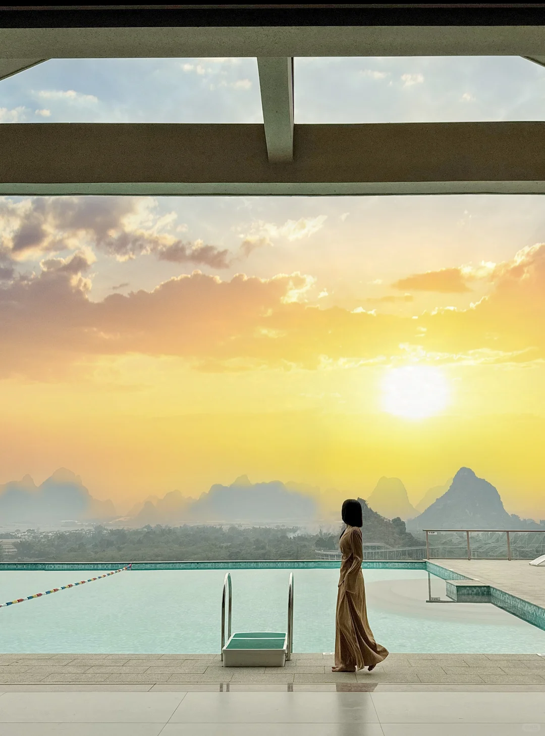 大厅更是我的心头爱,在泳池就能看夕阳⛰️