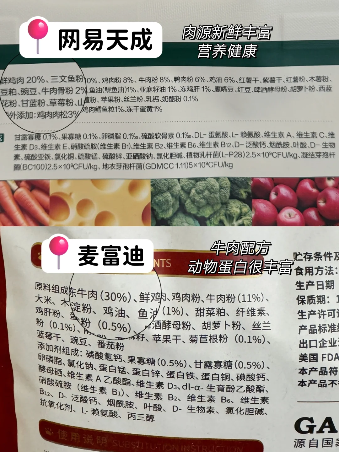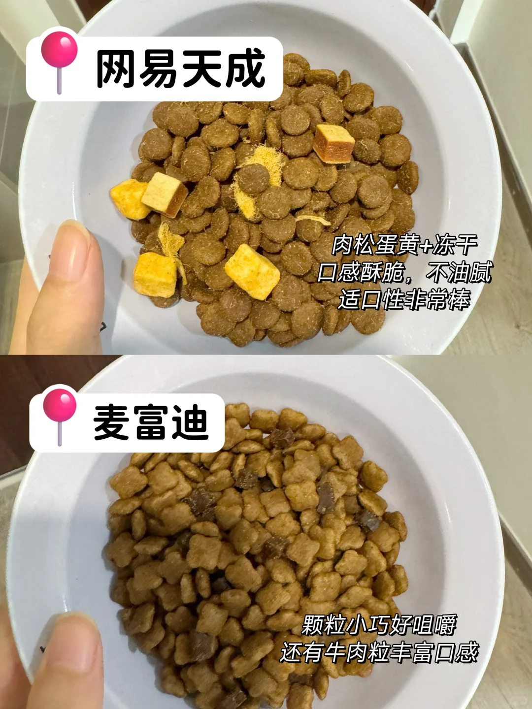 这几天给狗子换粮,都选出毛病了,选来选去,最后留下了网易天成和麦富迪这两款,实在是不知道怎么选了,麻烦大家给我出出主意!网易天成是大品牌,感觉安全喂起来放心,而且这款真的性价比超级高啊还是三拼粮,喜欢喜欢,麦富迪也不错的呢牛肉味的,真是难以抉择!