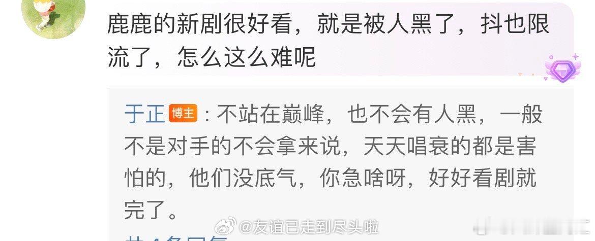 于正说白月梵星没扑大爆 专注《白月梵星》,白鹿演技在线,于正请勿多言,守护演员形象。