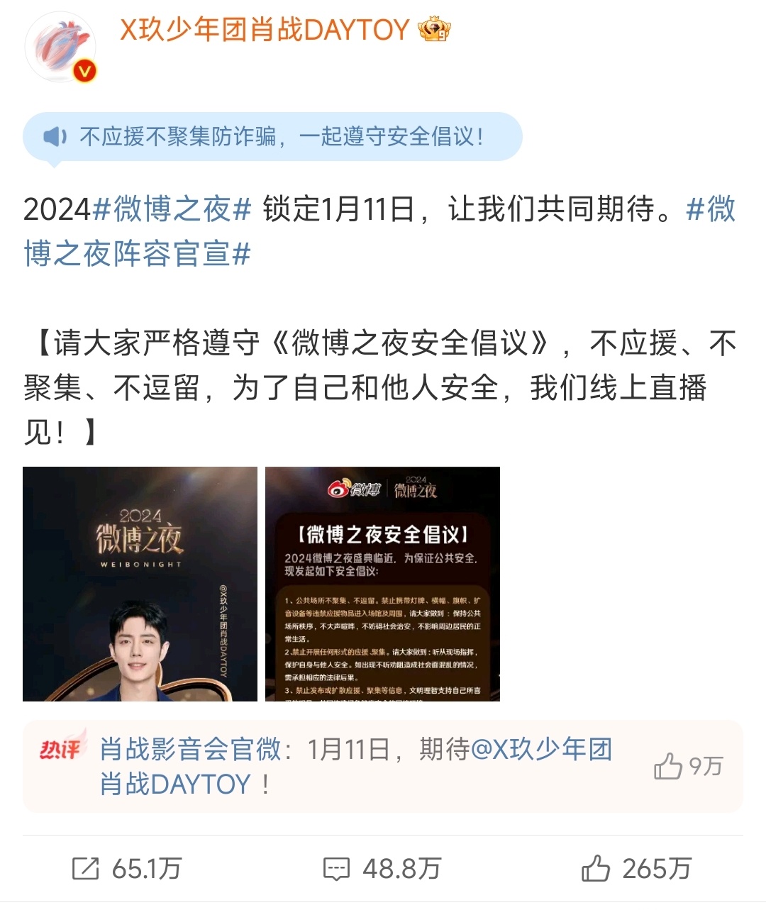 王一博肖战倡议大家不应援不聚集防诈骗,一起遵守安全倡议!
