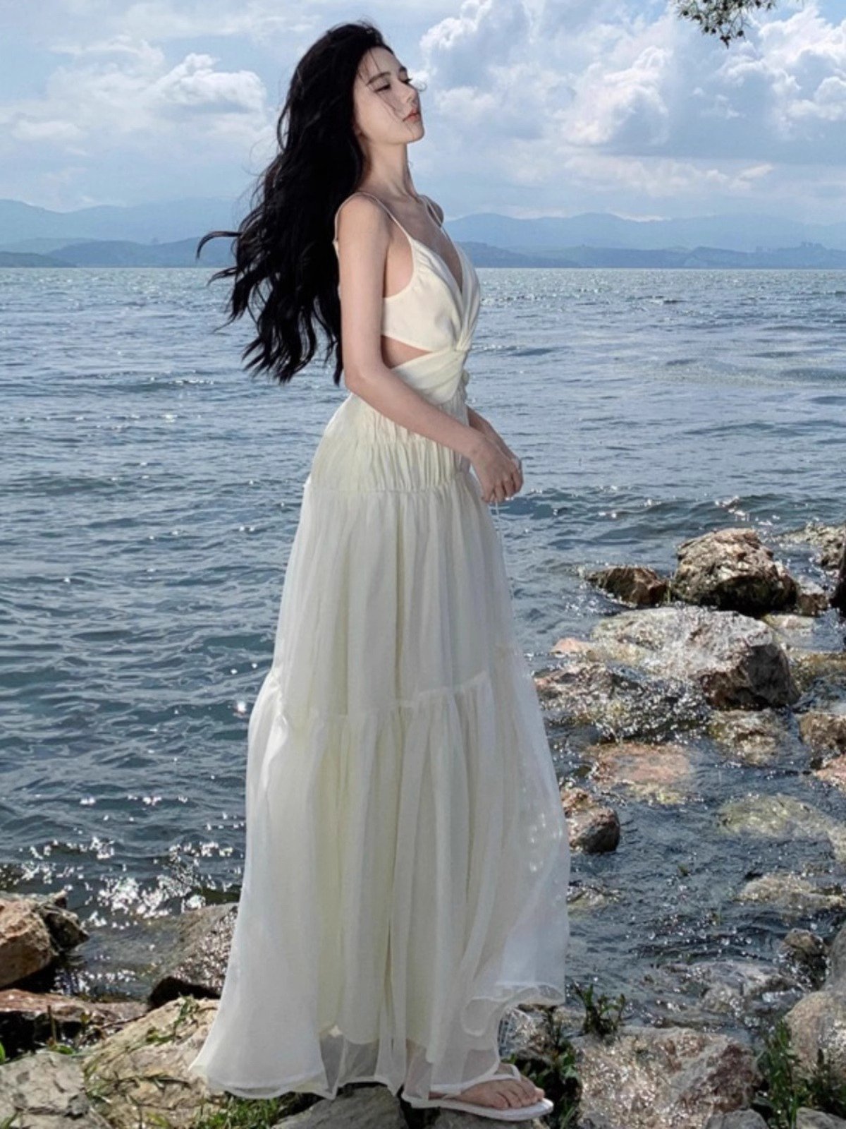 法式绝美抹胸挂脖吊带连衣裙女超仙海边度假