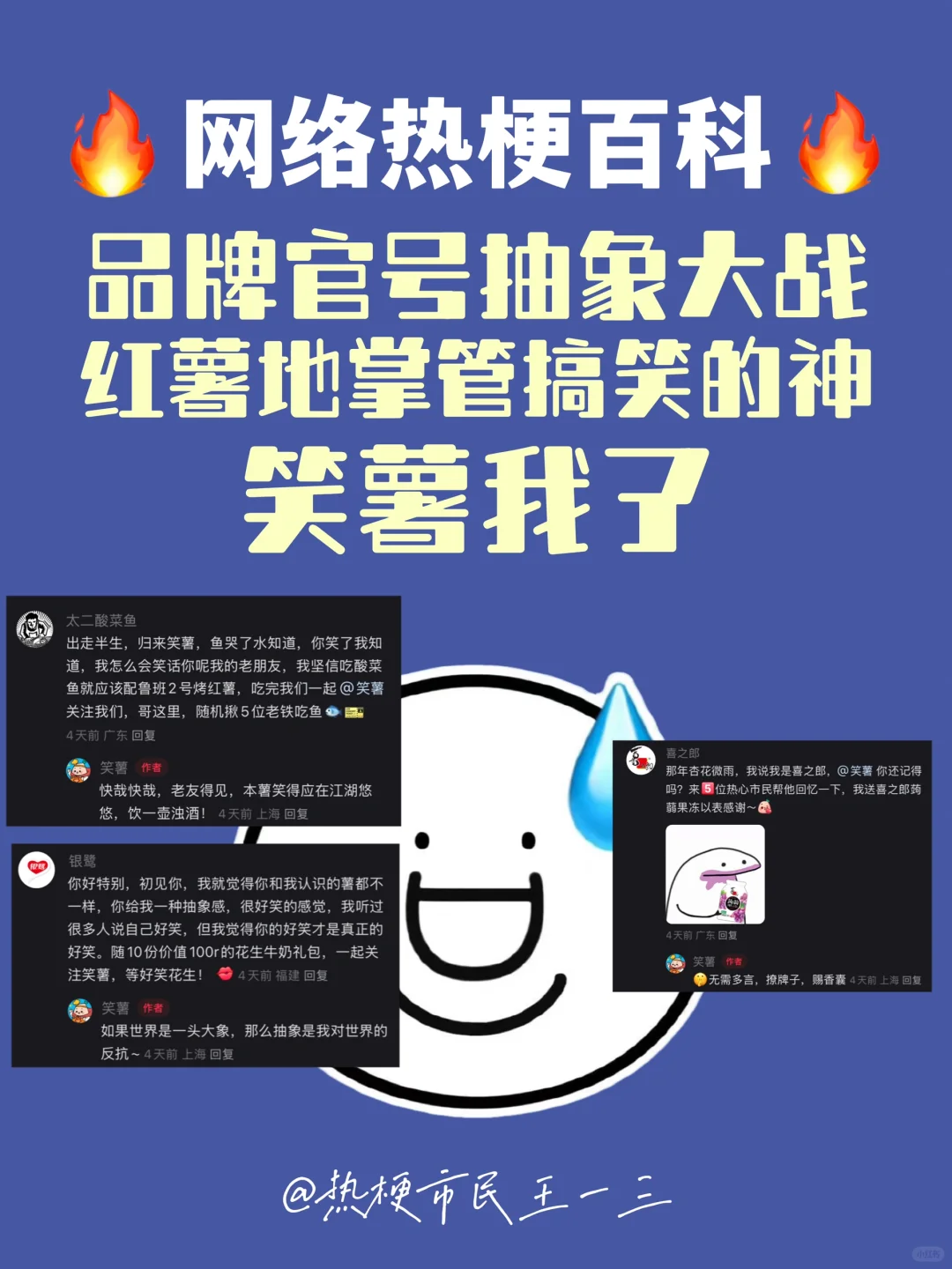 这位薯你是不是只会哈哈哈哈哈哈[doge] 看见大家快来一起笑话它鸭 ✅笑薯 ✅night walk ✅确诊为奖励型人格 新的一年,祝大家做一个像笑薯一样开局自带搞笑的人! 这里是热心挖梗市民王一三[doge][doge]网络热词解读,带你12g冲浪🏄♀️欢迎大家投稿[暗中观察R][暗中观察R]