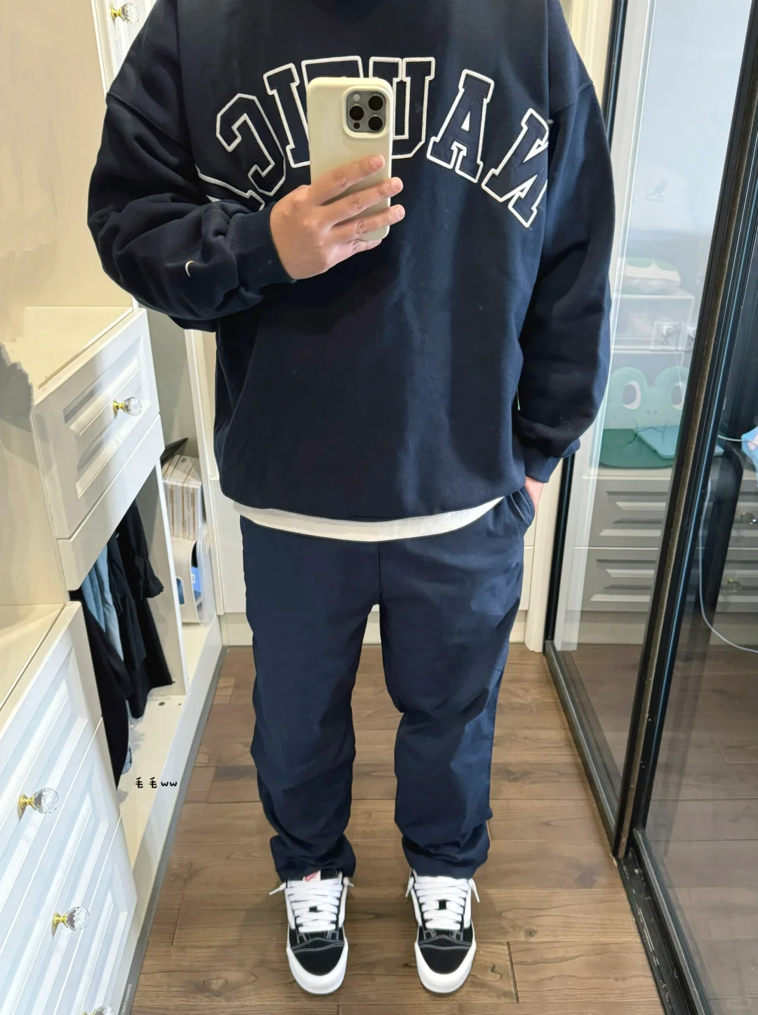 -喜欢蓝色的小伙伴,不会拒绝藏青色系 -一双经典黑白万斯,轻松搞定整套穿搭 -直筒chino,宽松卫衣,海军蓝好显年轻 . —————— . 👔Nautica JP / 长谷川 // L . 👖Teenie Weenie Men // XL . 👟VANS Knu Skool // 41 . —————— . ✏️本人178cm75kg 球鞋尺码265mm(正常EU42) . 💭以上均为我个人观点,不喜勿喷,欢迎讨论。