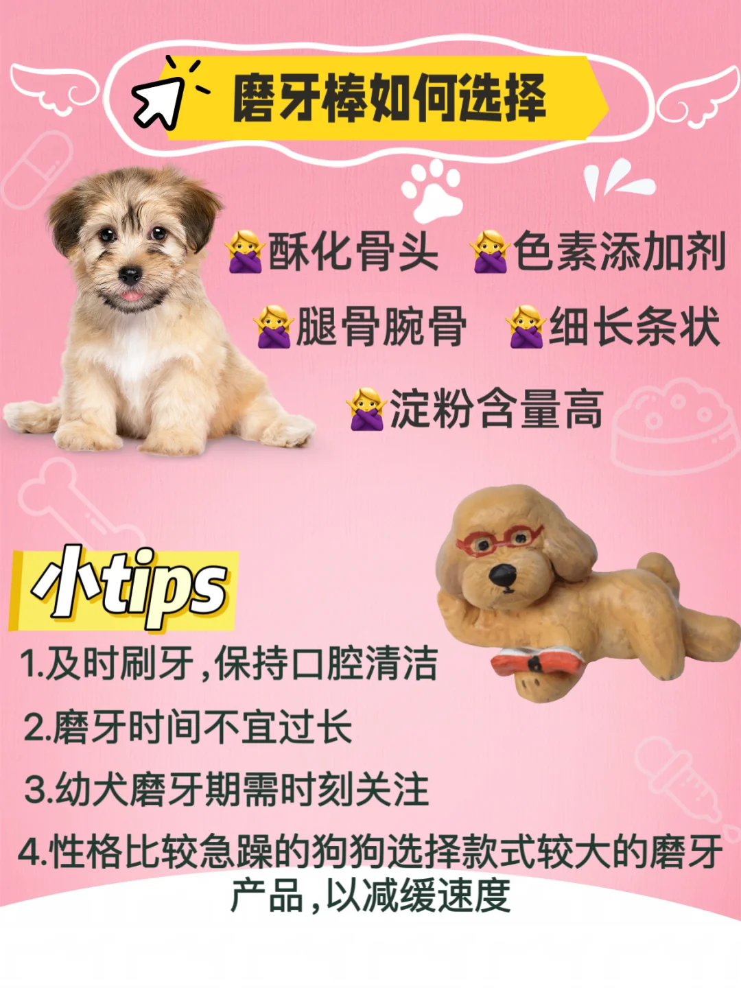 磨牙棒的选择上也要注意,拒绝淀粉含量高的、酥化骨头、有色素和添加剂的等等产品,以免上瘾或者出现危险⚠️
