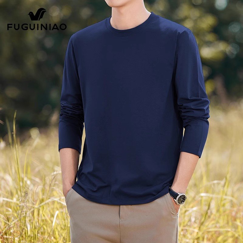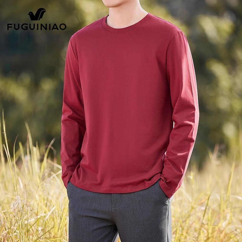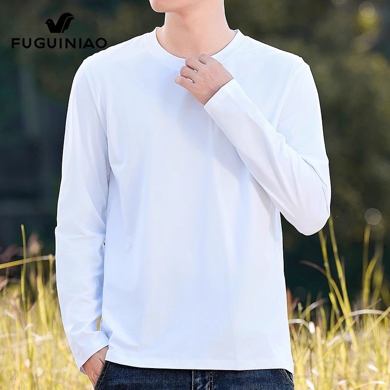 富贵鸟男士长袖t恤白色打底上衣服2025年春季新款休闲圆领卫衣男