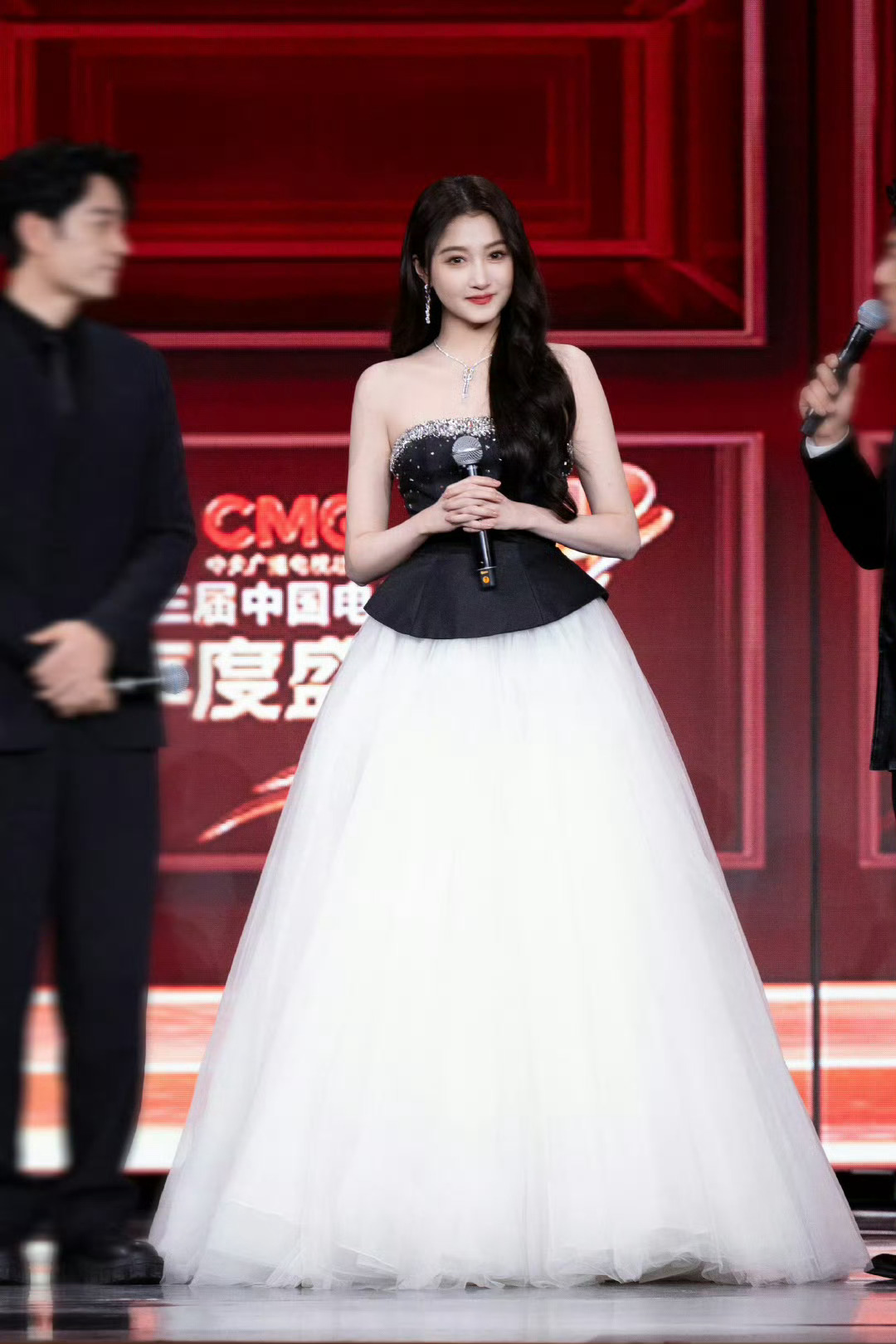 关晓彤换风格了第三届中国电视剧年度盛典红毯,关晓彤一袭黑白纱裙,让人眼前一亮好