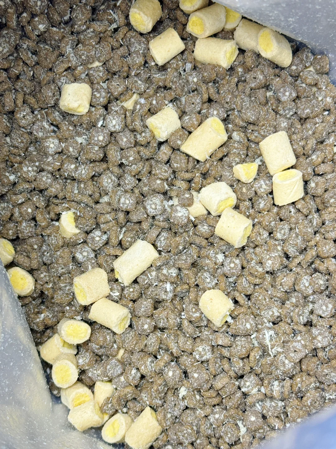 因为这次大促活动抢好价,变得没以前那么难抢了,这是为啥,还是我的错觉啊 我家猫之前就是因为太能吃,所以从进口换成了国产,然后就买了亿欧嘛,一开袋我就觉得好香我家猫就围上来了,我看了下配料也没改啊,价格也没贵啊,反而颗粒和冻干都有升级,现在颗粒是幸运四叶草图案的,冻干是芝士夹心的,但为啥感觉很多人不再买亿欧了啊