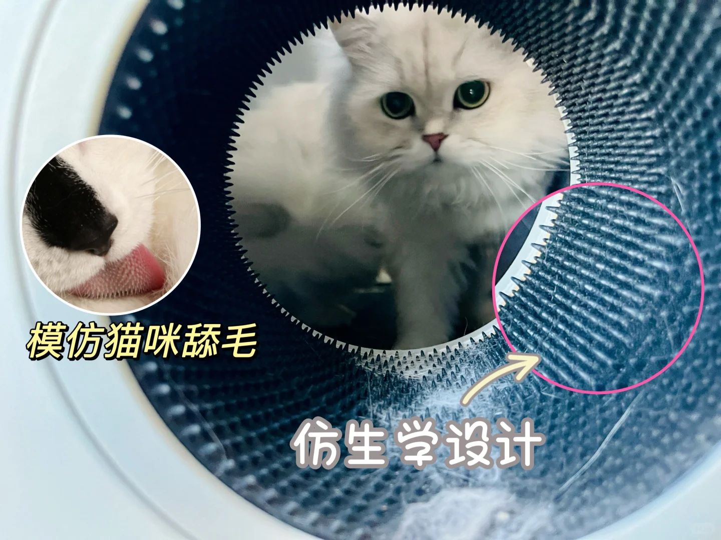 原来~它选用安全材料制作的仿生学猫舌,模拟猫咪自己舔毛的过程梳理毛发,箱内有专门的集毛区,可以把清理下来的毛发收集起来,避免满天飞 到处是