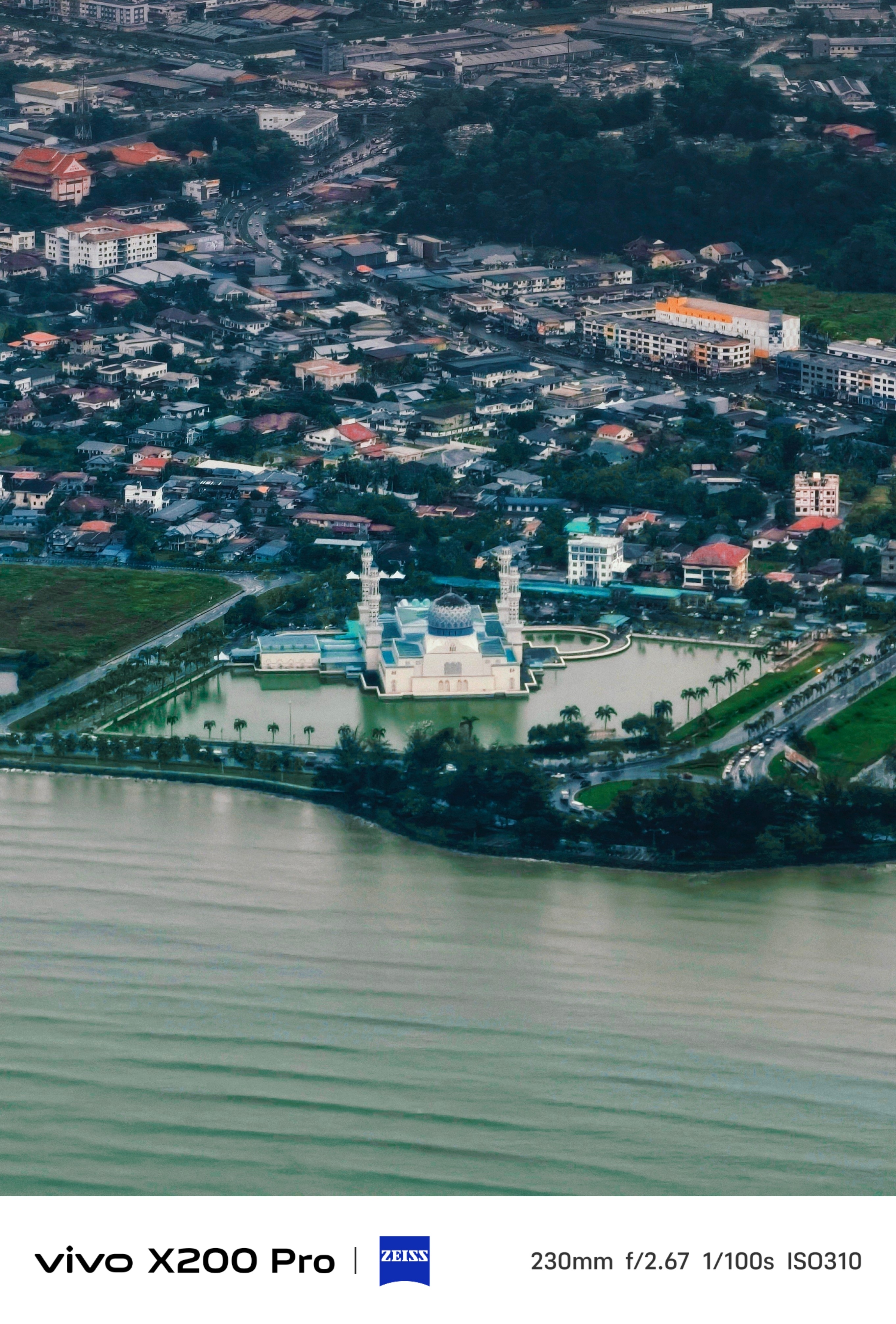 回来的飞机上隔着窗航拍了一张水上清真寺🕌