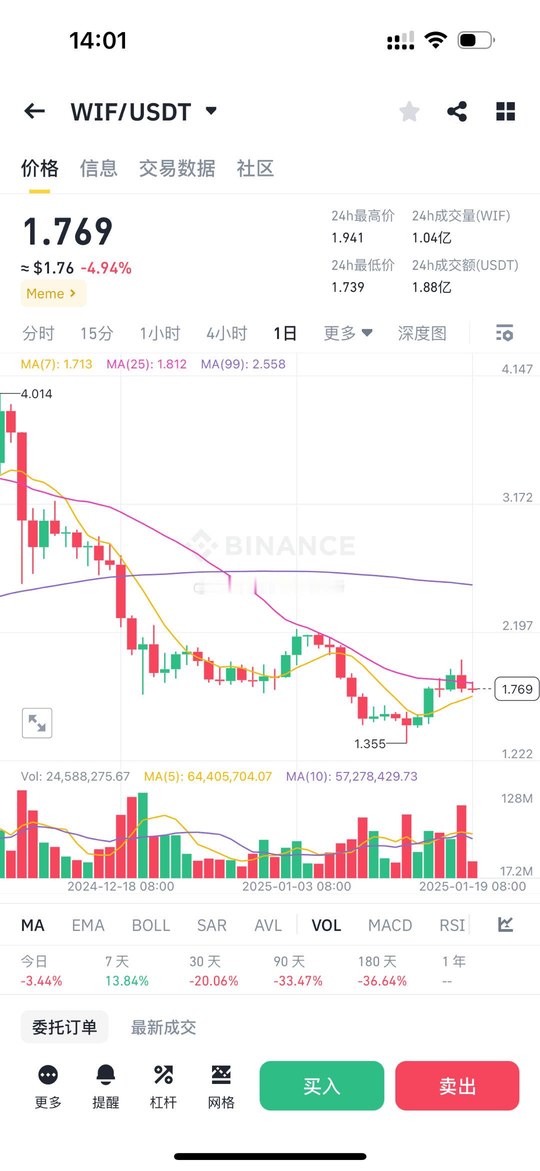 这一波sol生态jup吃到红利了,身为sol生态meme板块的wif表现不佳,很正常meme都没表现,底层逻辑就是jup是生态,老爷子用的jup买的sol,meme只是风没吹到,耐心点,毕竟咱们sol在车上,wif也是早晚的事儿!