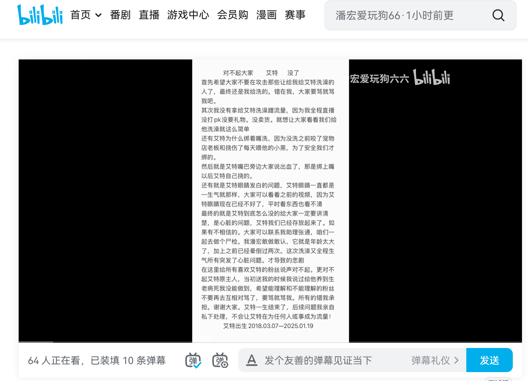 陈乔恩为网红艾特发声 什么?乔恩都出来发声了。在小破站🔍【潘宏】看到了事件全程的视频,视频中有很多时间点网友深扒发现艾特状态不对劲了,为什么ph最后才从发现不对劲到下播救狗,其中都已经过去好长时间……因为信任才把狗狗送到园区,结果怎么会这样……视频中的艾特真的好可怜,潘宏的深夜回应可信吗?