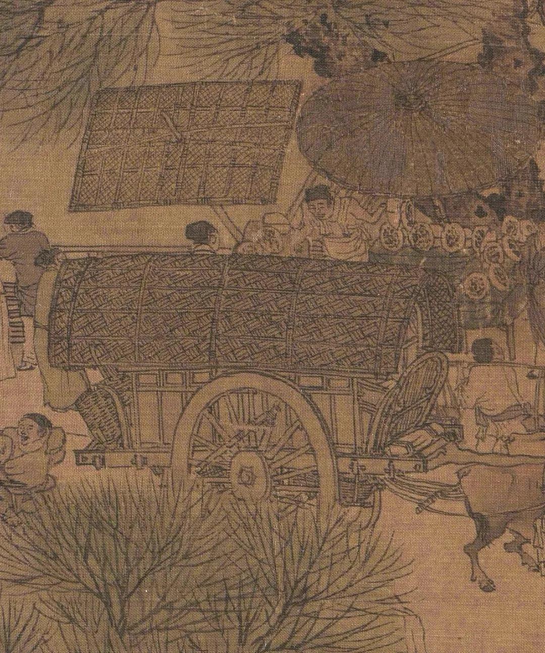 这辆牛车车轮上为什么要绑上一个木杆?难道是辐条松动或有什么毛病吗?