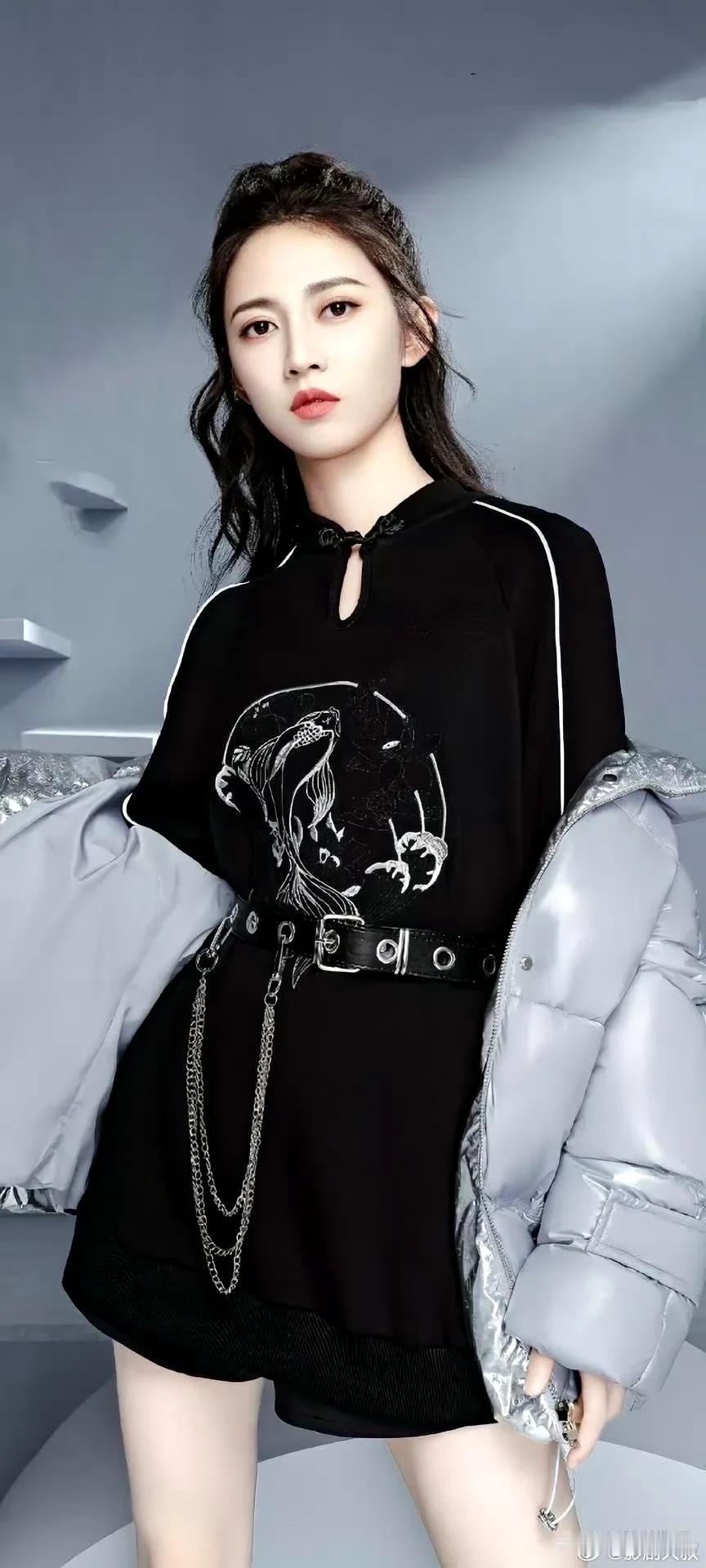 但凡张天爱身上有一点赘肉都穿不了这个衣服