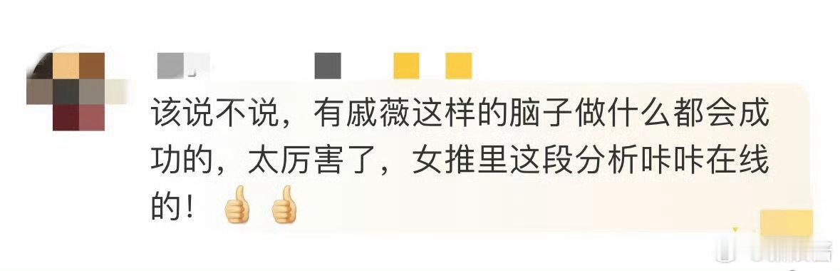 有戚薇的脑子做什么都会成功的 戚薇在推理节目中再次展现超强大脑,细致入微的分析让人折服。挑选宾客环节,她运筹帷幄,每个选择都充满智慧。这样的她,成功只是时间问题!