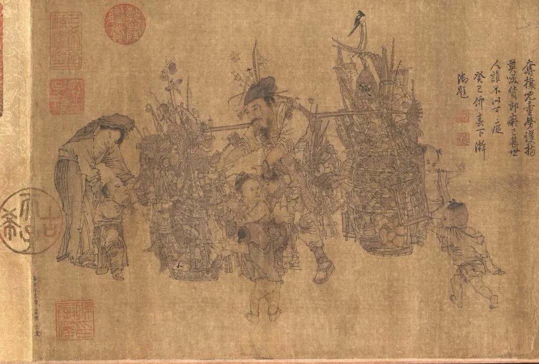 宋代一个货郎旦上挑着300件的物品。这是真的吗?据中央美院黄小峰先生逐渐辨认,南宋李嵩《货郎图》中这个货郎担上共有292件商品,这还是除了那些看不清难以辨认的物品。可见300件是不夸张的。