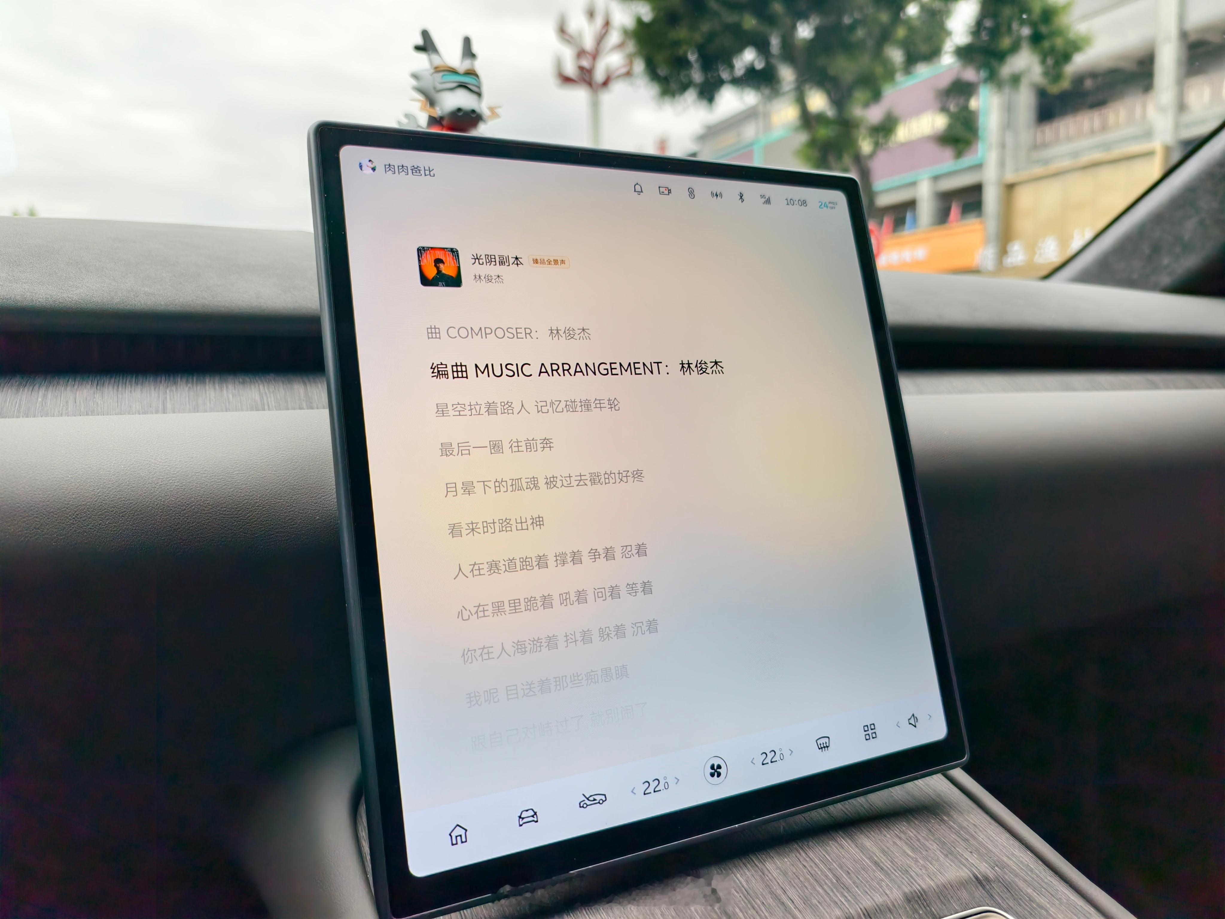 ET7 后排屏,肉肉主要用来控制歌单,他自己的歌单,还有看歌词
