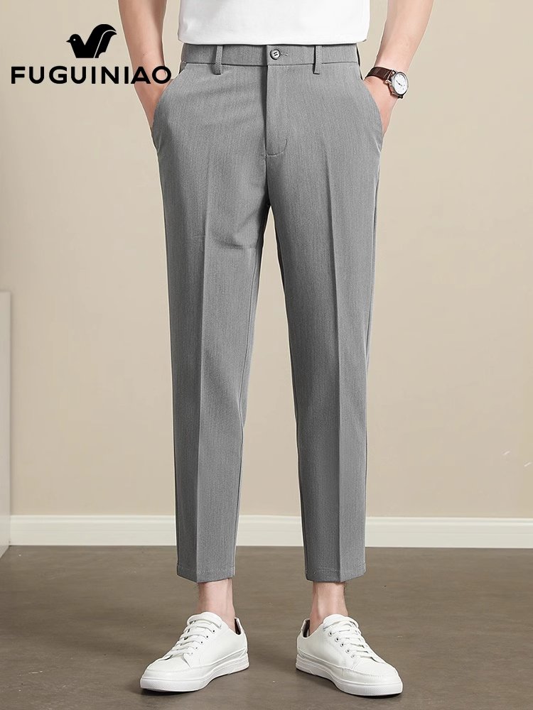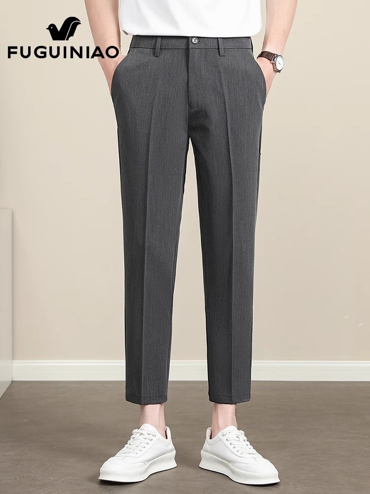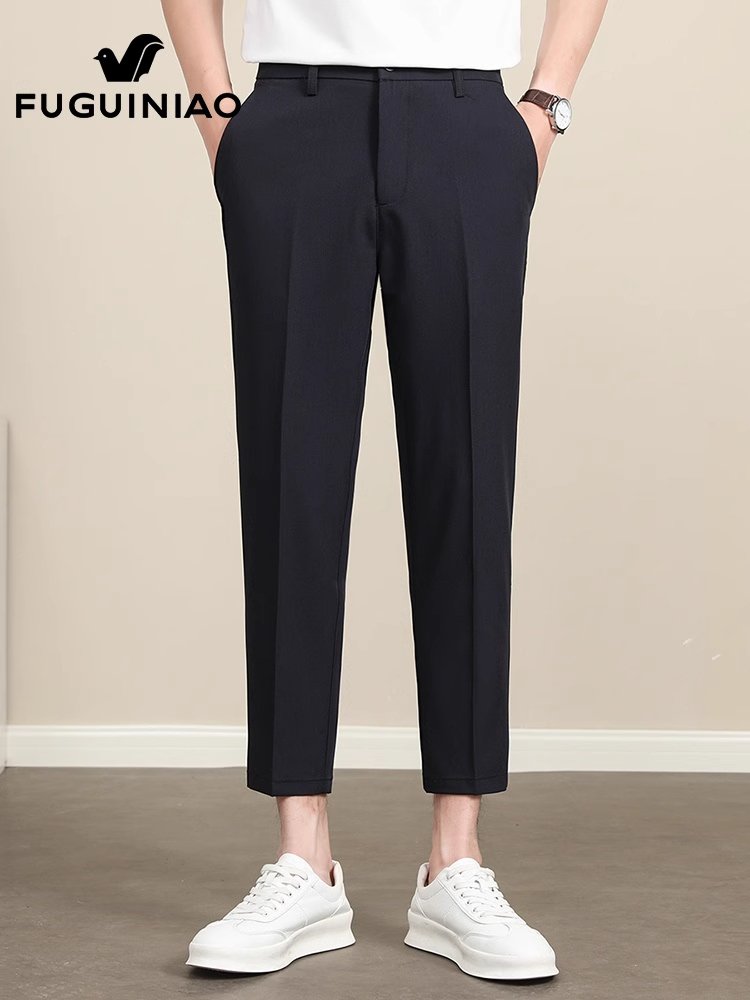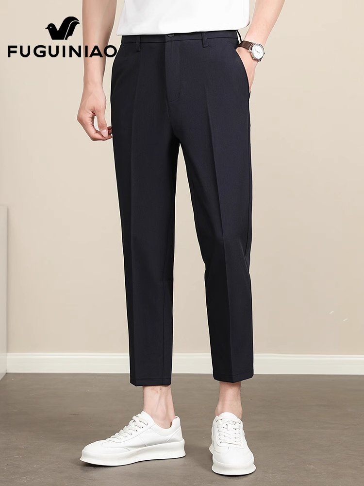 富贵鸟春季休闲裤男士直筒九分裤新款潮流商务西装长裤子男