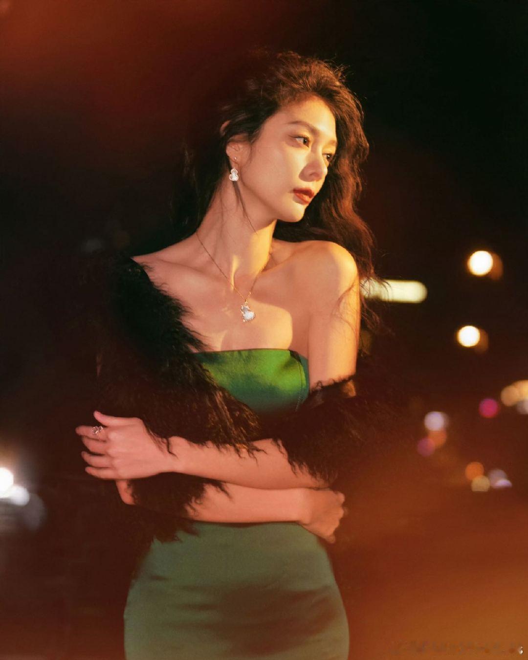 刘亦菲这一身衣服太丑了,用花挡住了才觉得好一点,全靠脸撑着