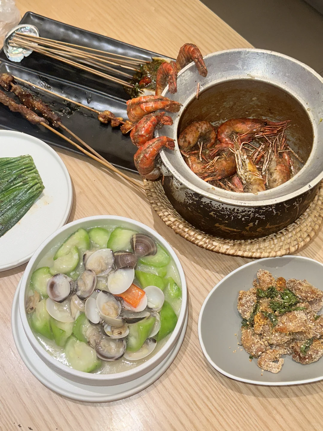 深圳有家台湾菜爆有味,好多香港的朋友都会特意跑过来为了吃上一口他们家的虾~ ☝️次吃用吹风机制作的胡椒罗氏虾🌶️ 虾壳很脆香,胡椒很浓郁,冬天吃太巴适啦 虾个头特别大,很新鲜,膏黄很多,yummy!😋 盐酥鸡也是台湾小吃!炸的金黄酥脆,一咬下去,好香~烧烤和小吃也好好恰,很适合和朋友聚餐 店面装修是轻奢ins风,白色为主,有很多绿植盆栽🪴,很适合拍照打卡,喜欢店里的大镜子,和朋友拍了好多照片🤩