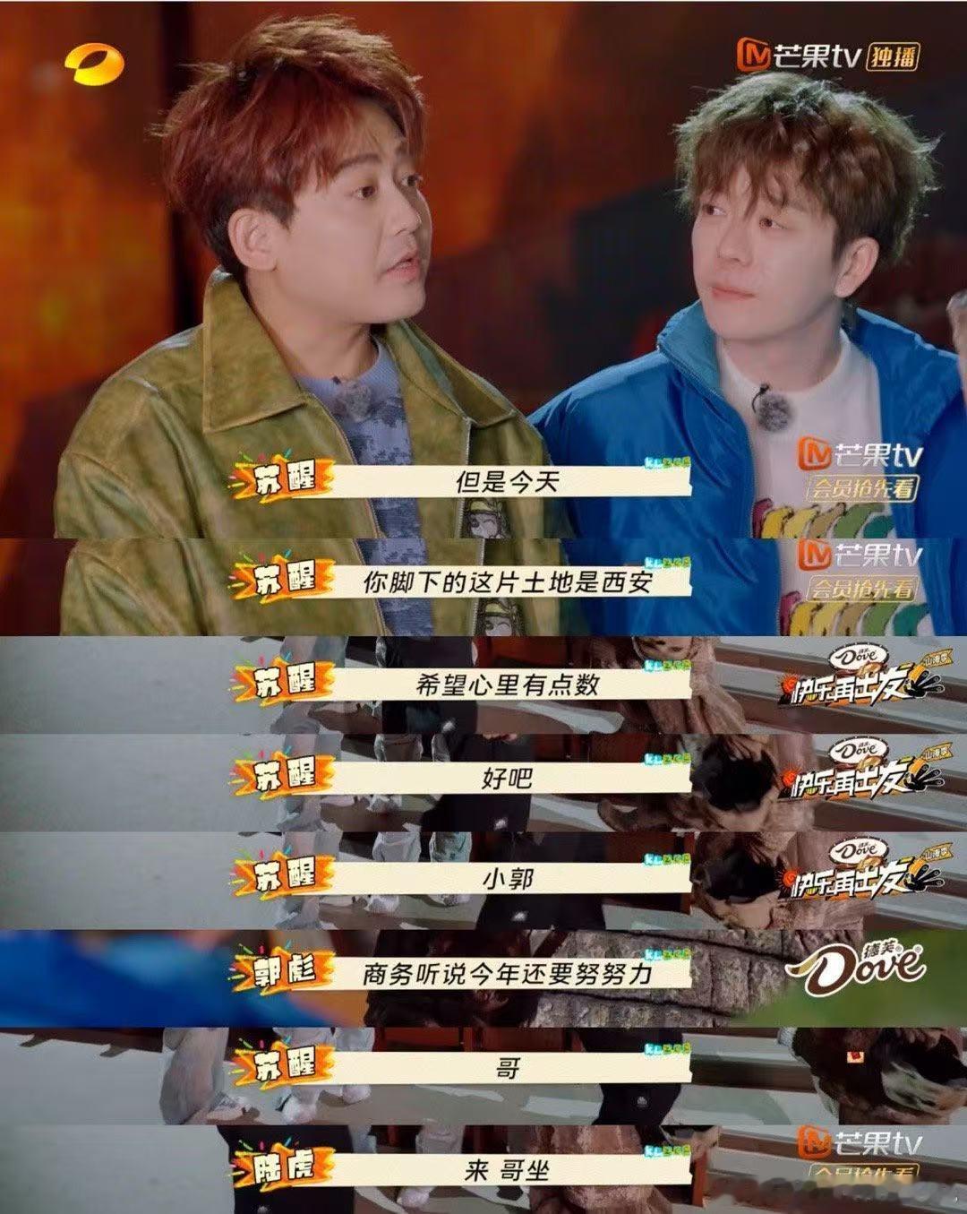 苏醒[超话] 苏醒上一秒神气下一秒漏气 苏醒在西安喊“小郭”,被郭彪“商务要努努力”回怼,立马改口叫哥,这兄弟互动太有意思。