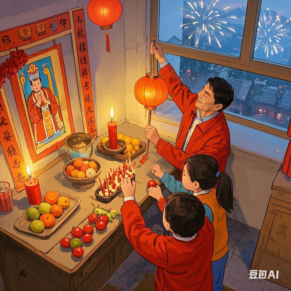 吃完年夜饭,一家人会围坐在一起守岁,通宵不睡,迎接新年的到来。长辈会给晚辈发压岁钱,寓意保佑孩子平安健康成长,晚辈则向长辈表达祝福和感恩。