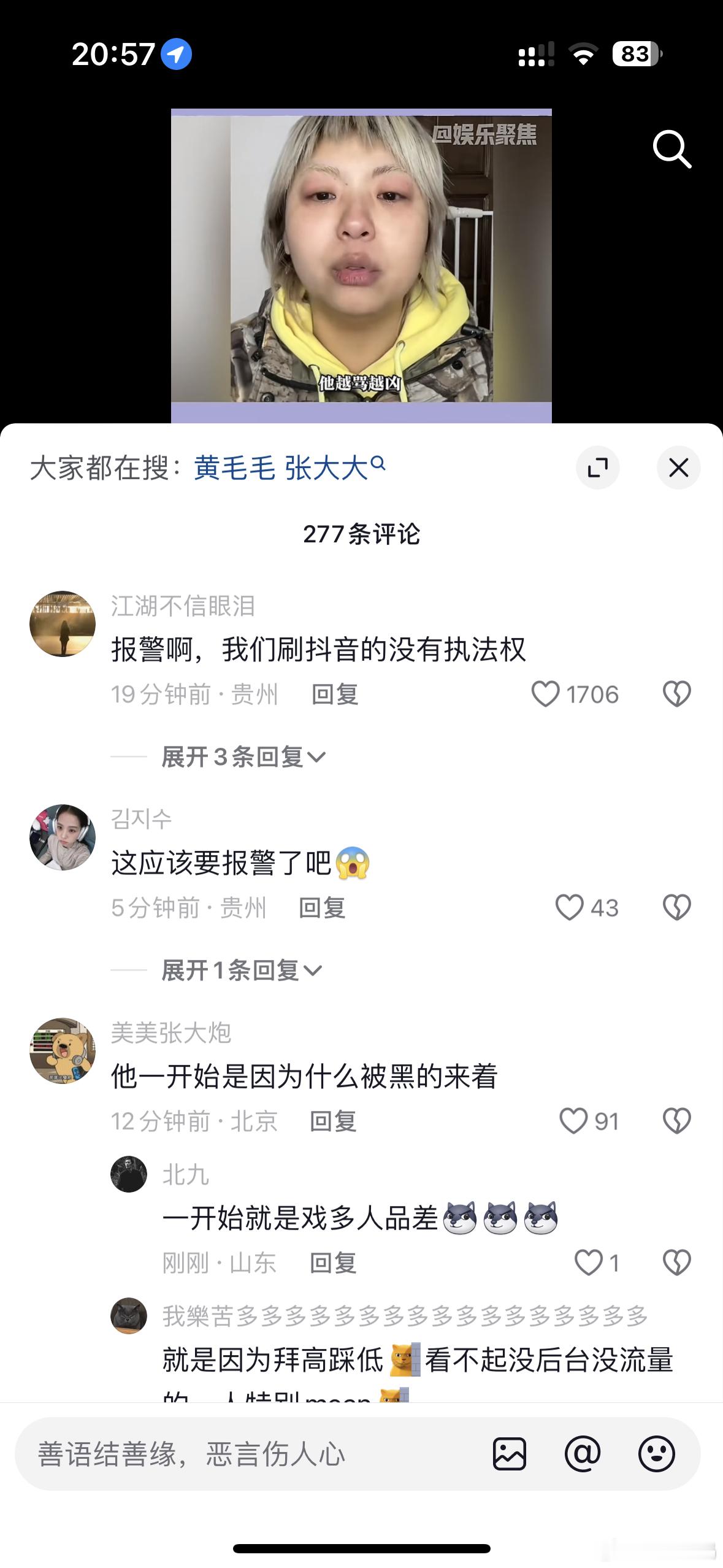 张大大被曝指使社会人士砸门恐吓真的直接报警啊,多吓人啊,还有之前的录音,别舆论