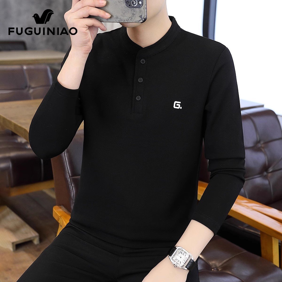 富贵鸟立领长袖t恤男士春季休闲打底衫2025年新款潮流宽松卫衣男