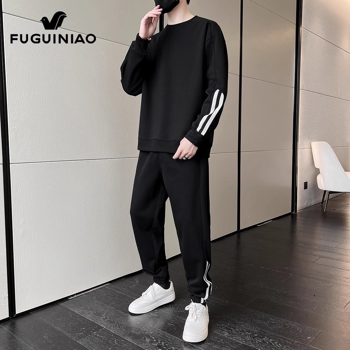 富贵鸟休闲运动套装男士搭配长裤子春秋季新款潮流卫衣两件套男装