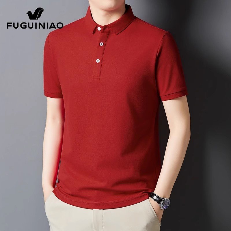 富贵鸟红色短袖t恤男士2025夏季新款翻领上衣服休闲商务Polo衫男