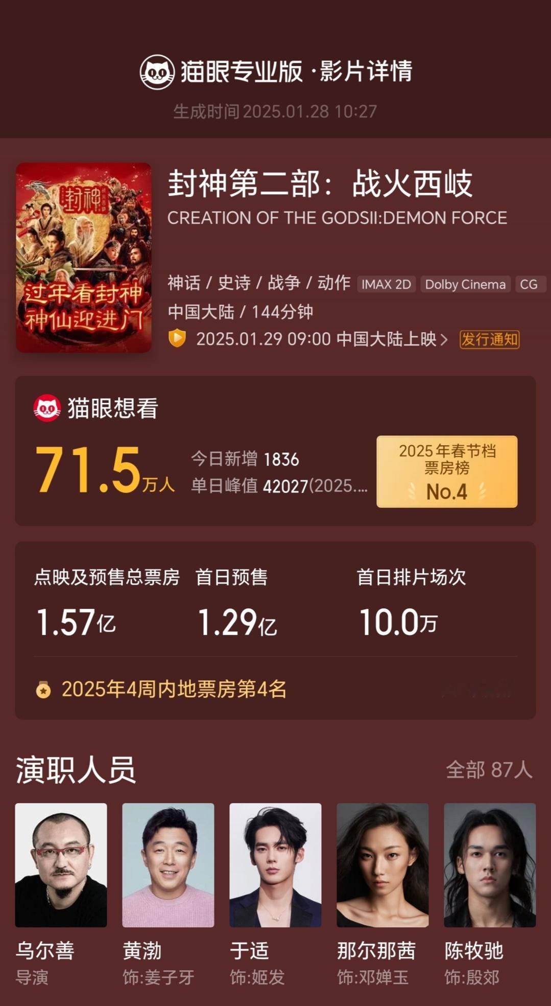 于适yosh[超话] 多品牌包场支持代言人于适新电影 据猫眼专业版云包场显示,多品牌支持 新电影《封神第二部:战火西岐》《蛟龙行动》,影片将于明天正式上映!