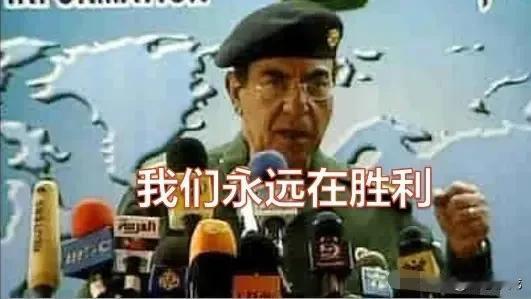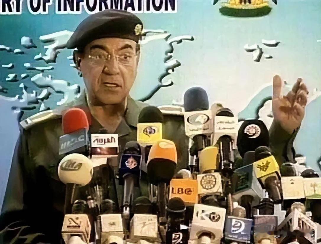 就是这哥们,非常敬业~~~2003年,美军打进巴格达时,时任伊拉克新闻部长萨哈夫,还在电视镜头前,身穿军装,声称伊拉克军队故意引诱美军进来,并已经埋伏了重兵,准备合围。 有没有一种可能,萨达姆看了他的报道,也相信了[大笑] 萨哈夫最后还是主动向美军投降,只是美军不屑,让他回家了 当然,我们的局座也判断失误:美军将陷入伊拉克人民战争的汪洋大海之中,无法自拔……[笑哭][笑哭][笑哭][笑哭][笑哭][捂脸][捂脸][捂脸][捂脸][捂脸]但局座应该是打的迷惑弹 作为发言人,他尽职尽责[赞][赞][赞] 美国知道他身不由己,没有惩罚他[祈祷][祈祷][祈祷] 萨哈夫是一个秀才、更是一个能说会道的发言,他竞说美军在沙漠里迷路了,然后乱走乱窜恰好来到了伊拉克首都。