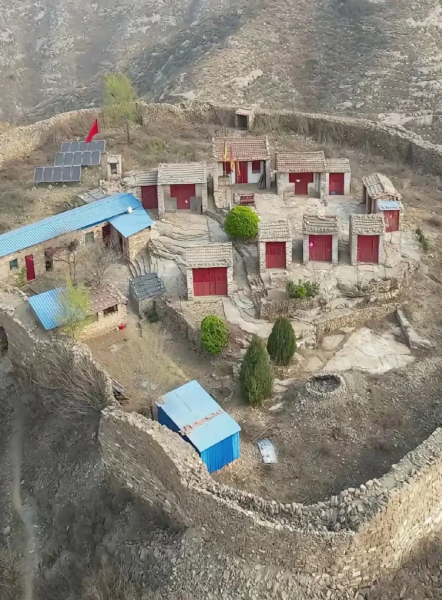 在荒漠的大山里有这么一个院子,院子错落有致,不知道是谁会住在这里?