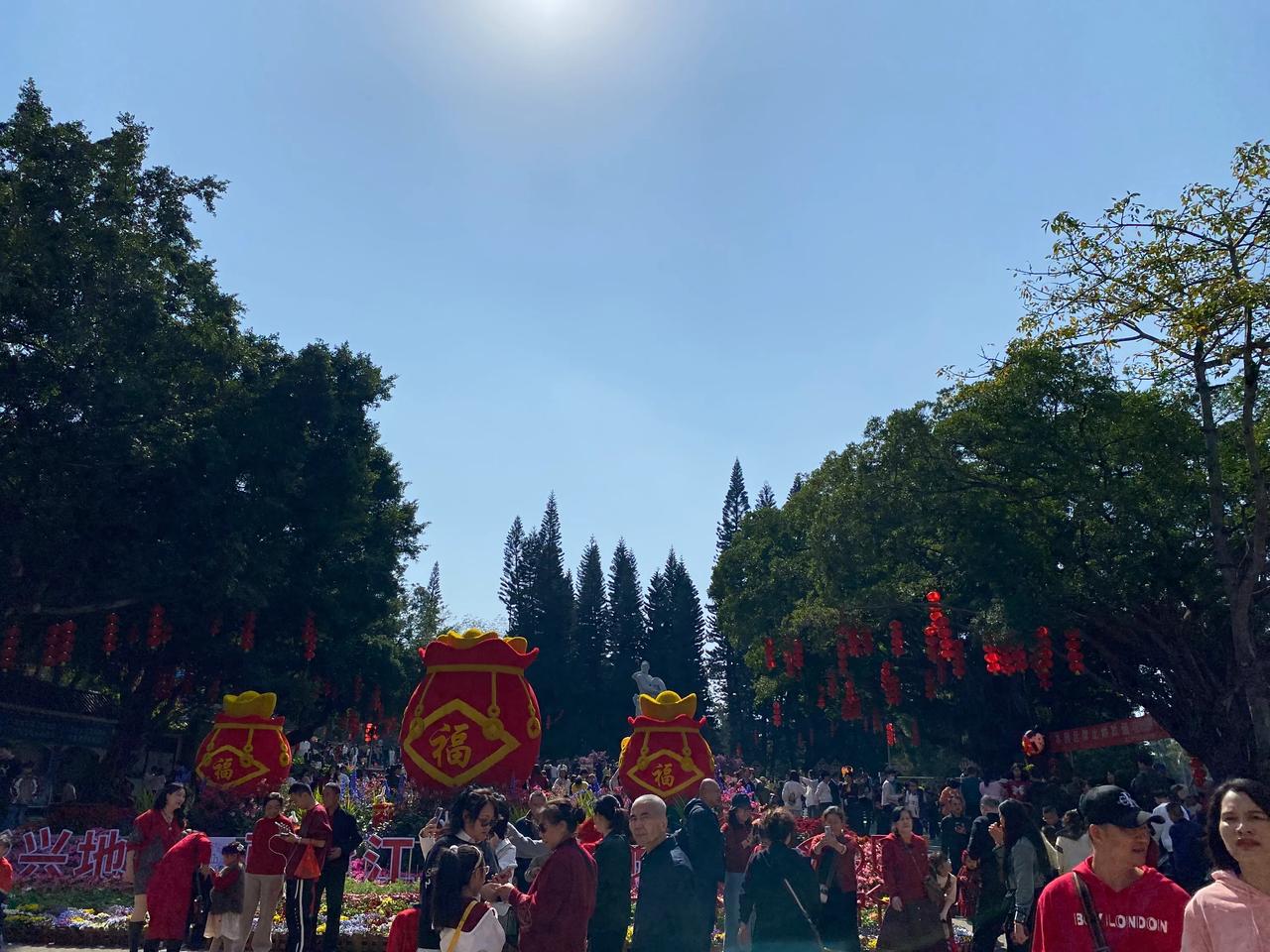 2025蛇年正月初一, 天气特别好, 大太阳, 蓝天白云, 寸金桥公园人山人海,