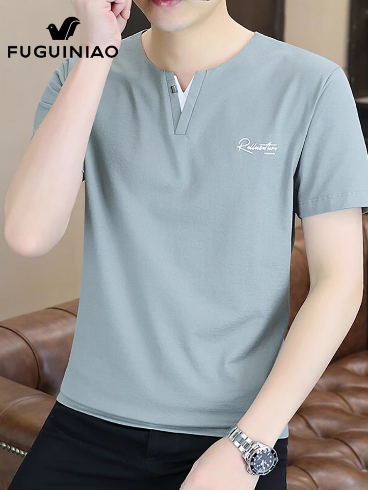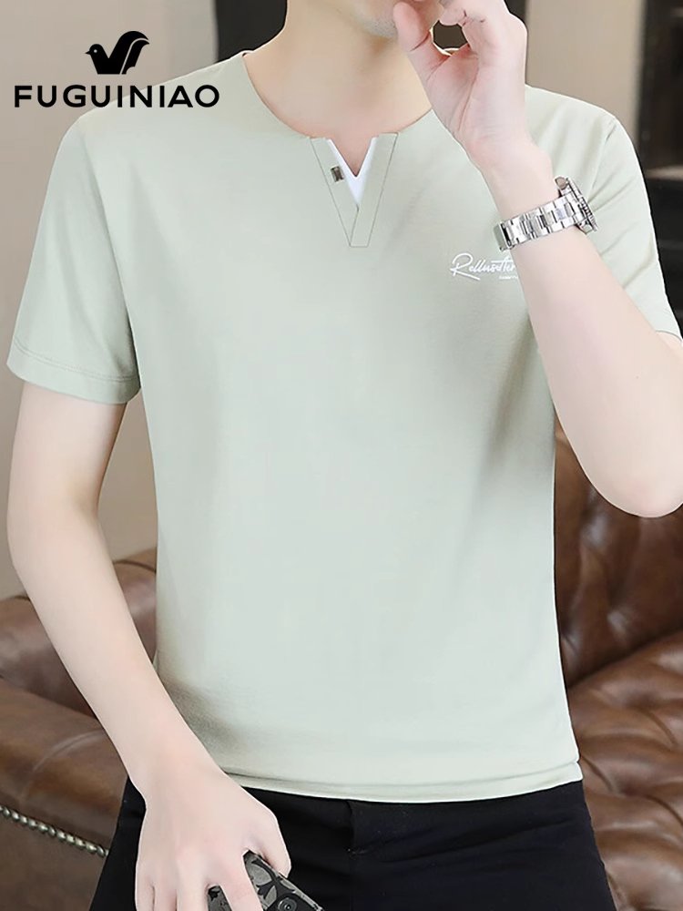 富贵鸟v领短袖t恤男士夏季半袖上衣服新款宽松休闲体恤男装