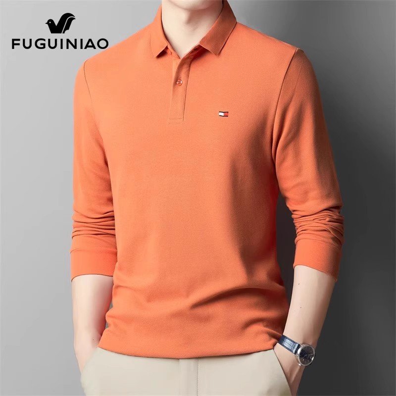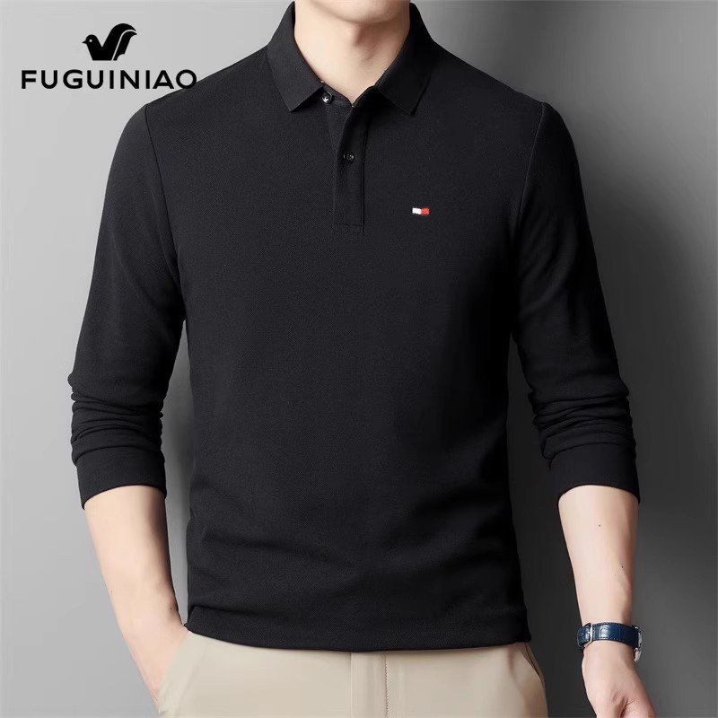 富贵鸟纯棉长袖t恤男士高端翻领打底衫春季新款商务休闲Polo衫男