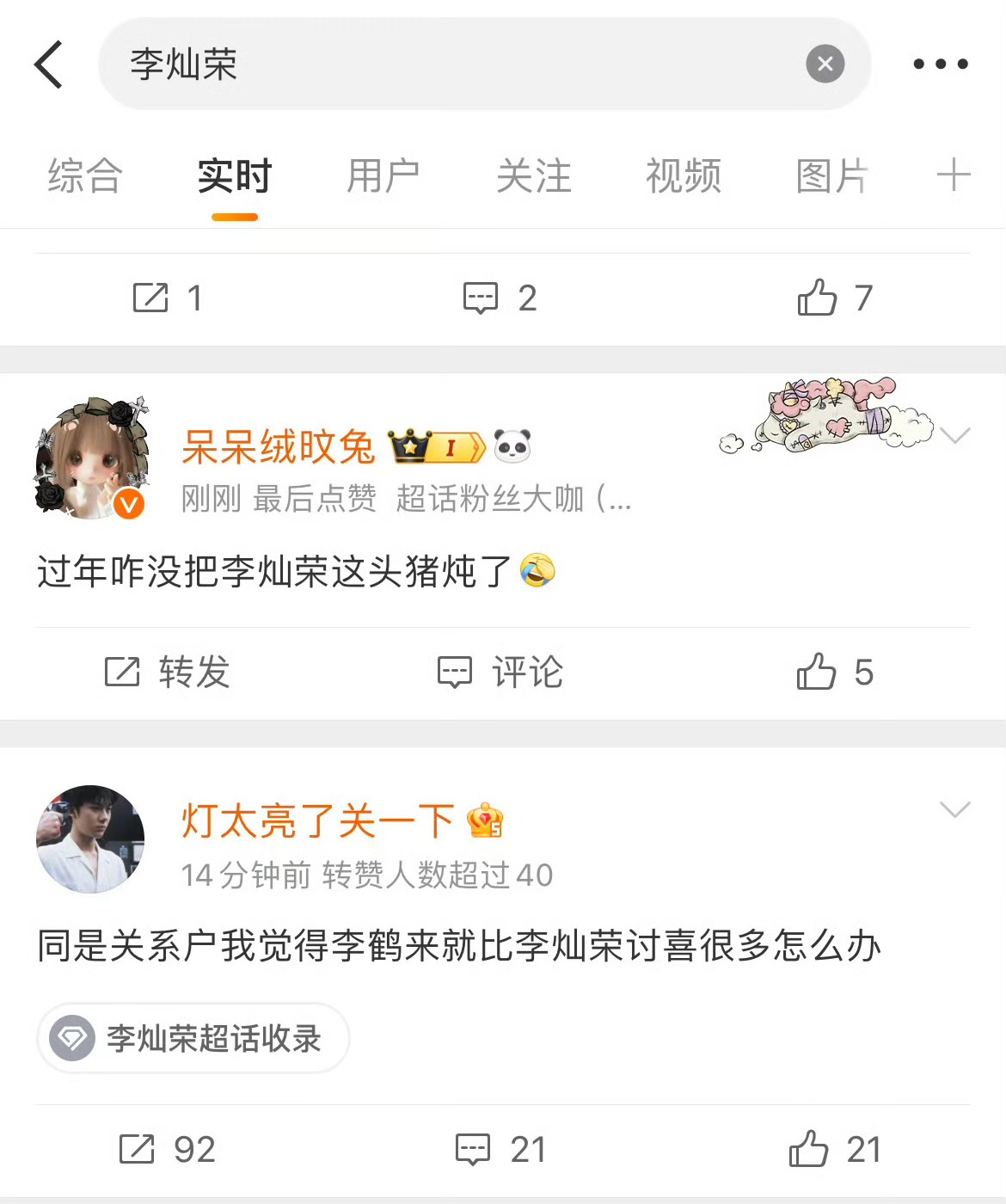 李鹤来 没关注超话也好感吧?先被拉踩的是李灿荣,转发日人怎么了?既然都开除这位粉籍,也没上你们词条,咋就这么迫不及待替别人站街[吃惊]能不能挂
