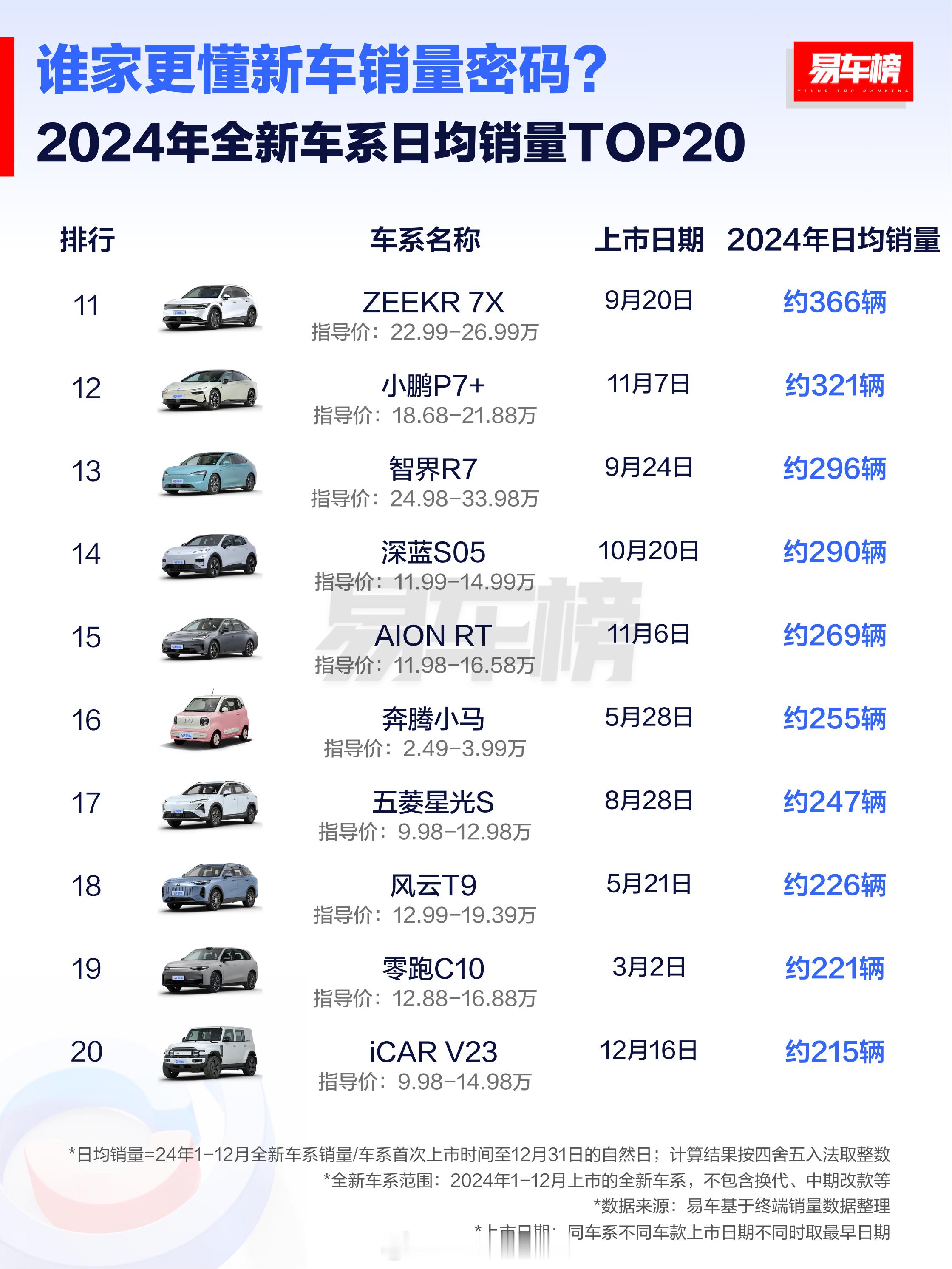 逻辑是用全新车型年销量➗新车上市日期到12月31日的自然日
