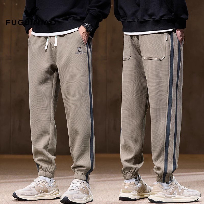 富贵鸟华夫格休闲裤男士春季新款潮流束脚卫裤宽松运动长裤子男款