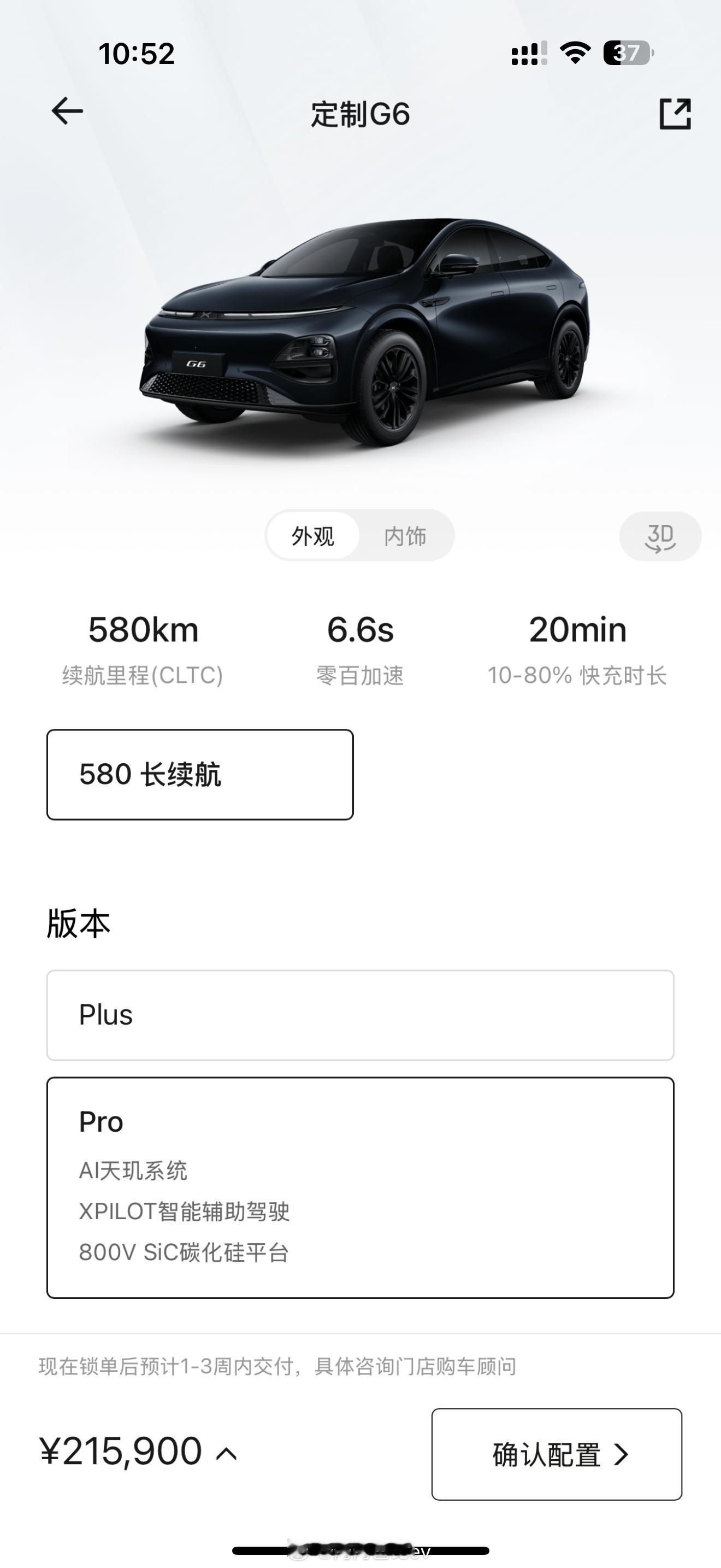 最近考虑G6的要快了,定制车型界面已经没有Max选择,只剩下580版本,这个月马上有动作